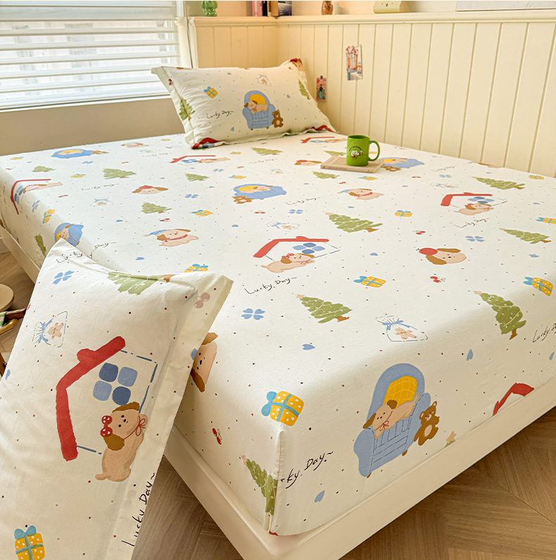 • 91家纺网 家纺一手货源 找家纺 名优家纺 2025新款全棉纯棉12868韩版小清新系列床笠单件--单床笠 浪漫小屋