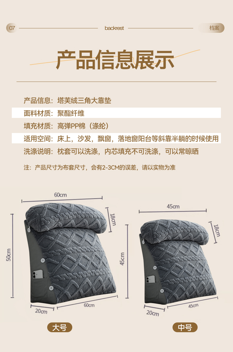 (总)爱妮灵蚊帐 2025新款塔芙绒头枕三角靠垫代发货,豆沙粉,蓝灰,抹茶绿,奶白,奶咖,柠檬黄,深灰