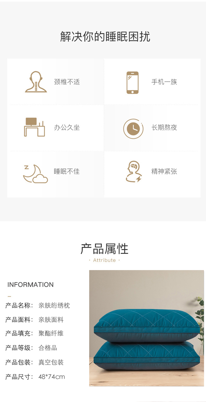 亲肤绗绣枕 羽丝枕 刺绣羽丝枕,亲肤枕白色,亲肤枕蓝色,亲肤枕灰色