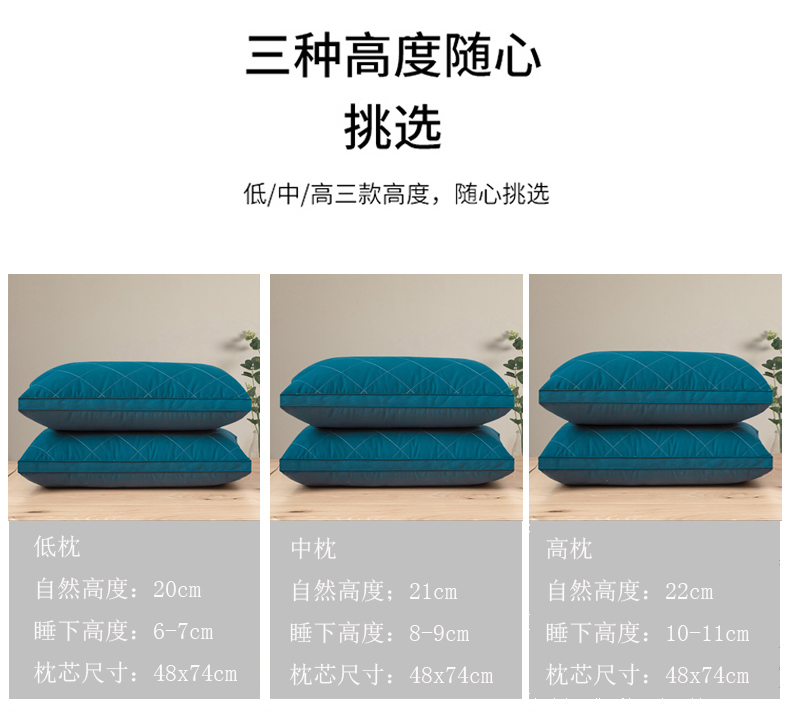 全棉羽丝枕 羽丝绒枕芯 三防枕芯 全棉枕芯 中高枕,全棉三防羽丝枕低枕900克,全棉三防羽丝枕中枕1000克,全棉三防羽丝枕高枕1100克