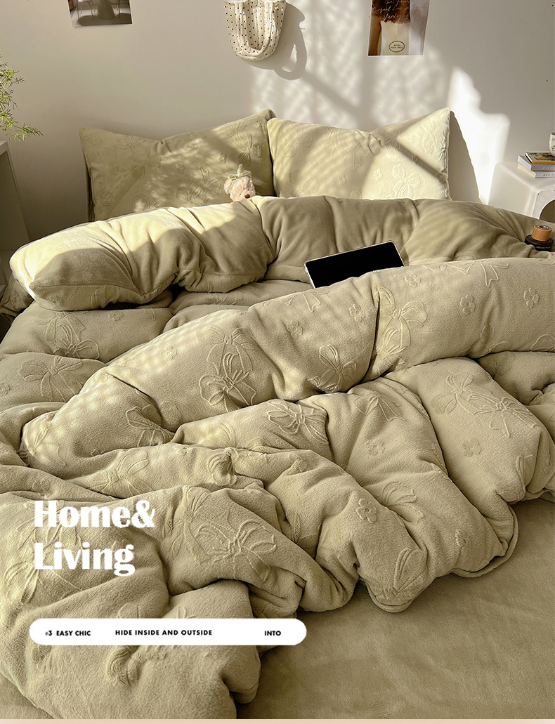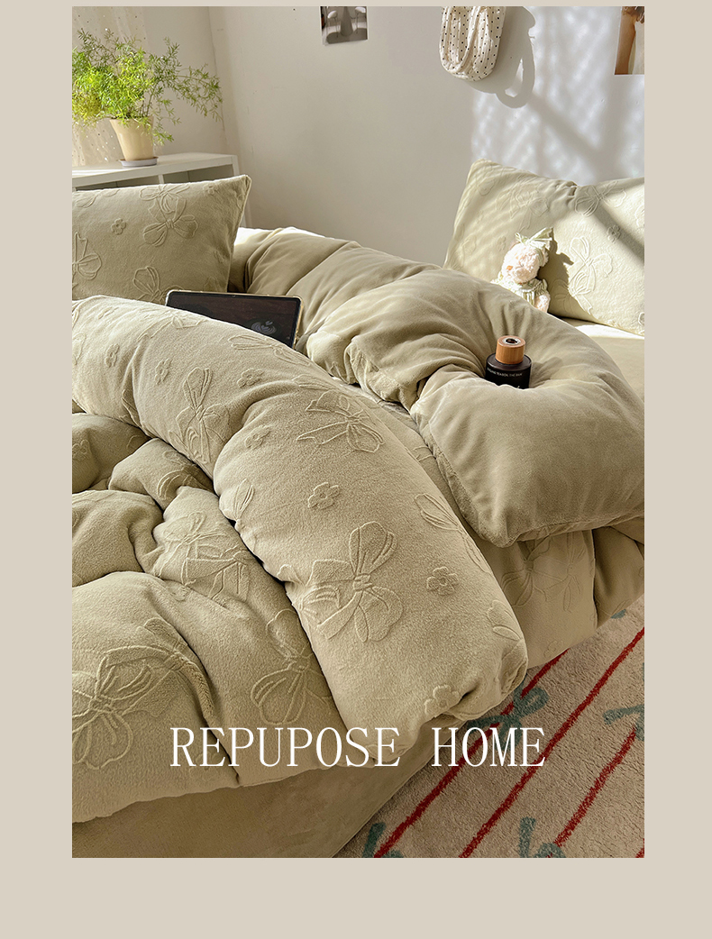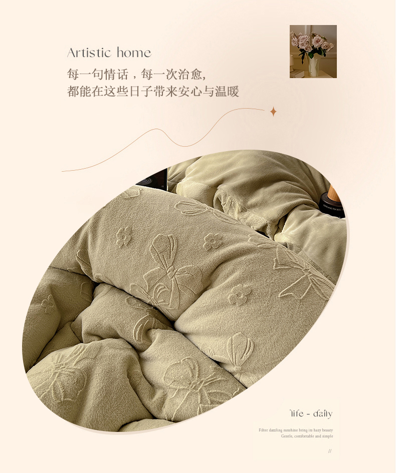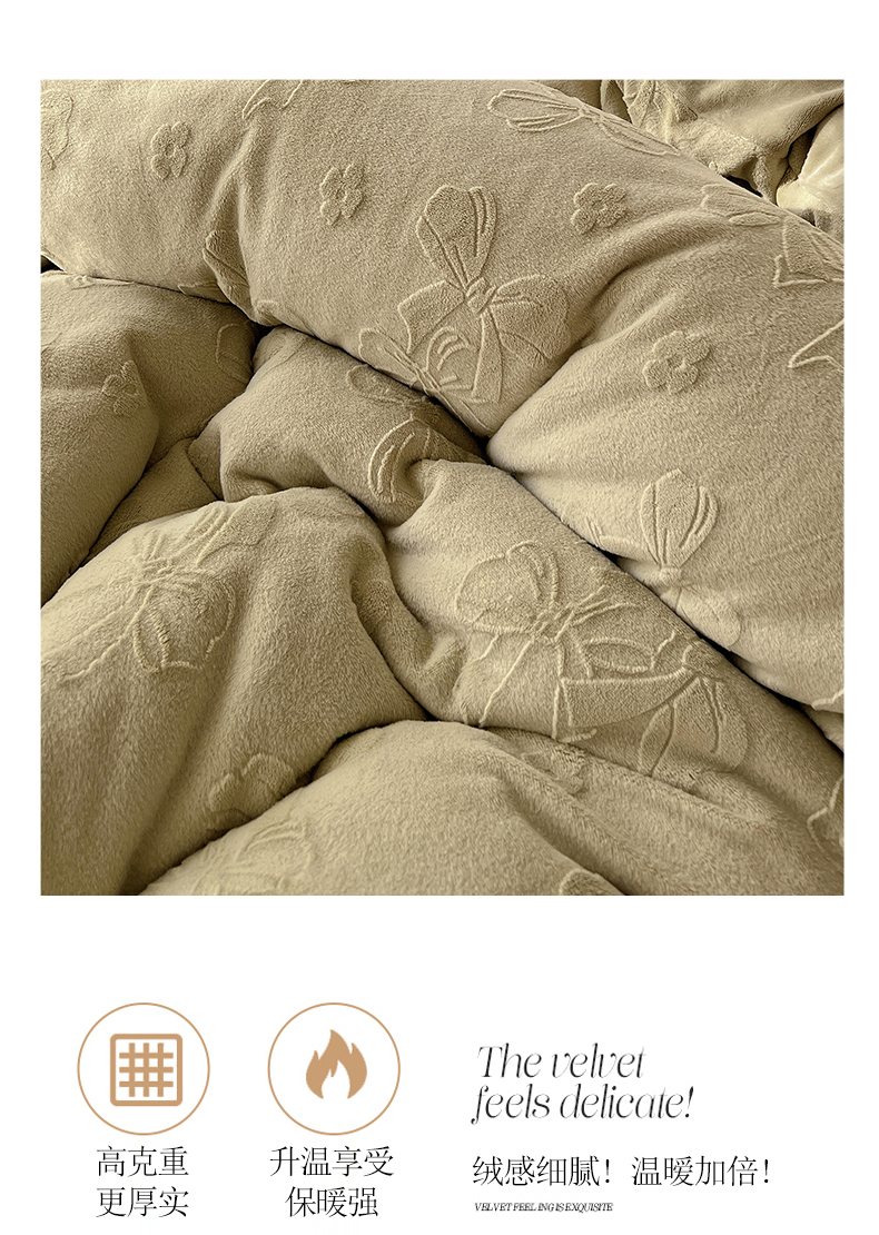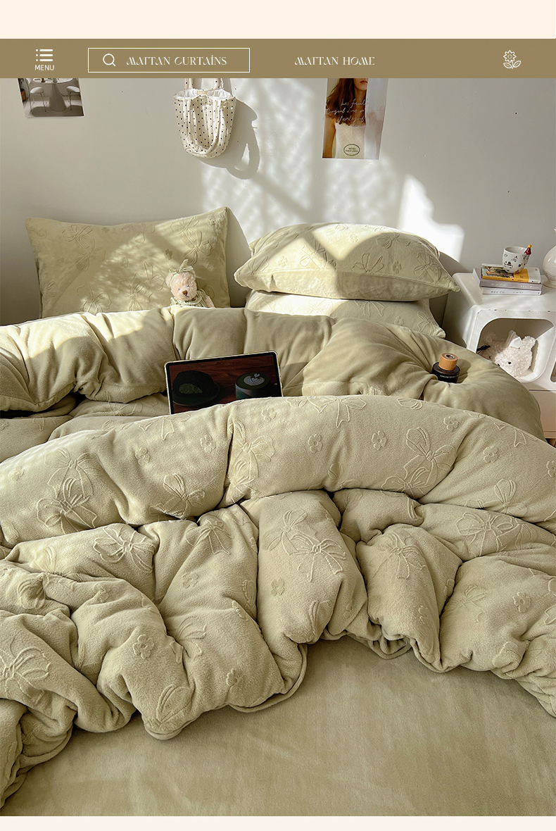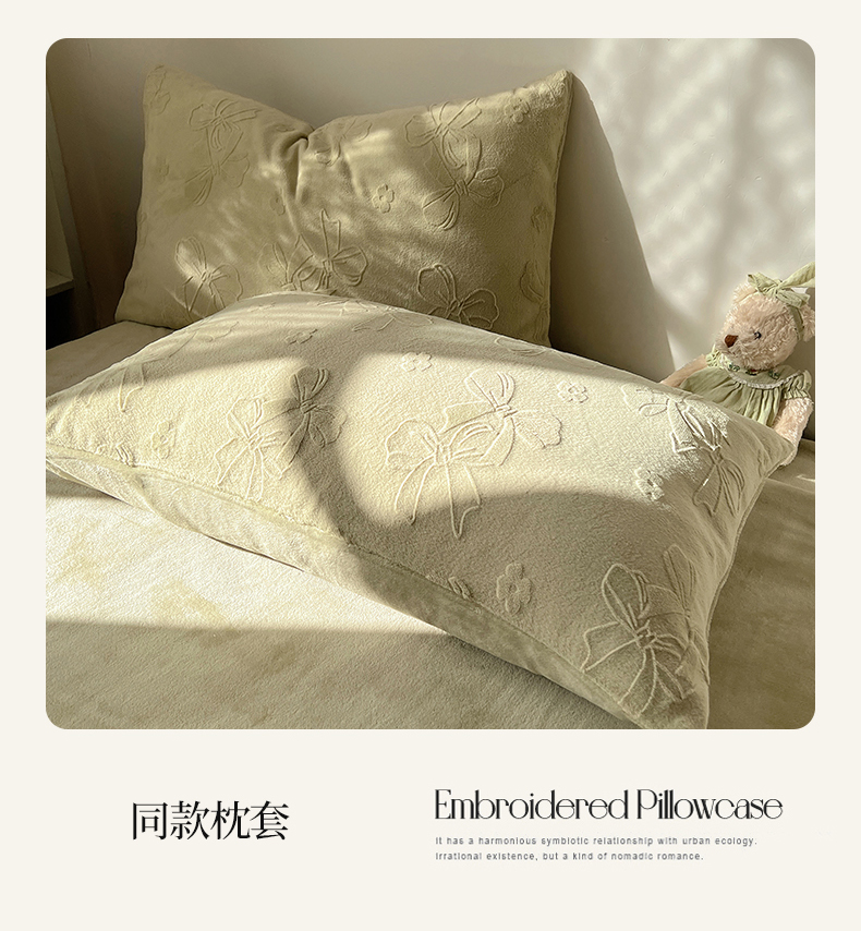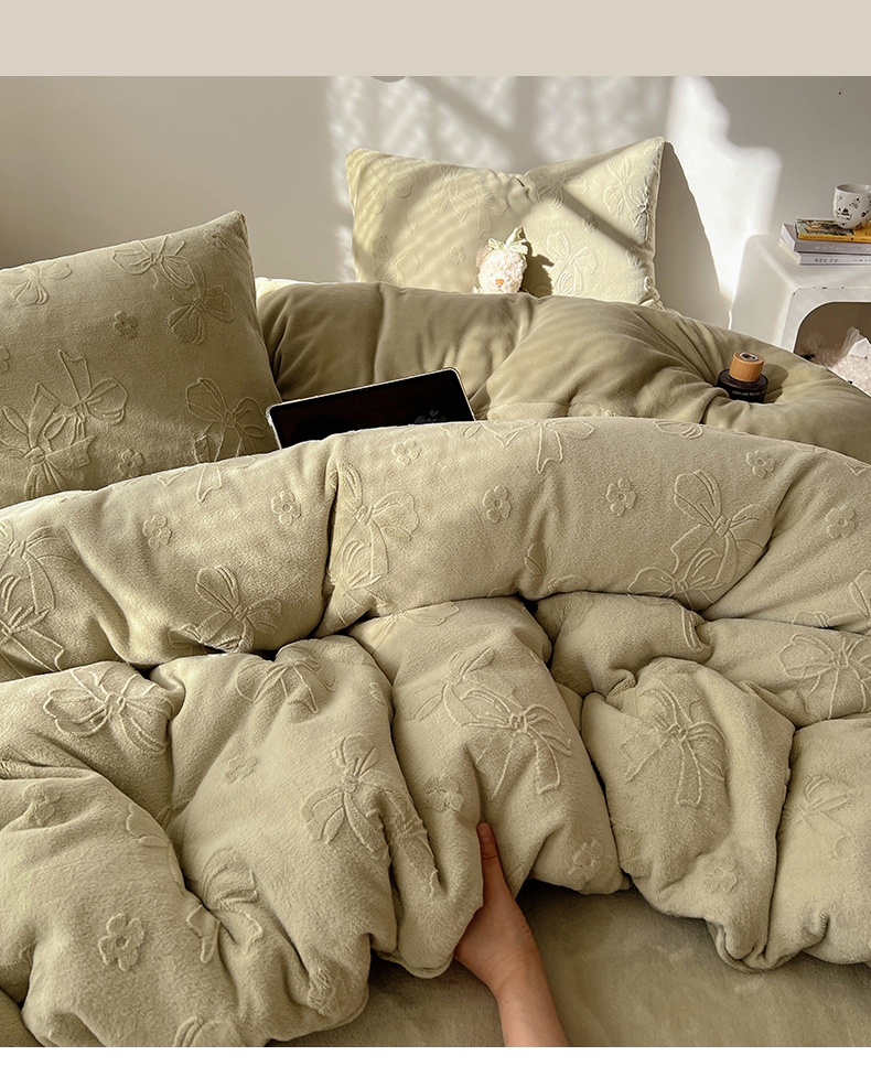 当前位置: 91家纺网 > 商品网购 > 床品套件 > 四件套 > 牛奶绒四件套 > 六巷胡同 2025新款INS博主风蝴蝶结心语立体雕花A类牛奶绒四件套 (会员减5元) 蝴蝶结心语-绿