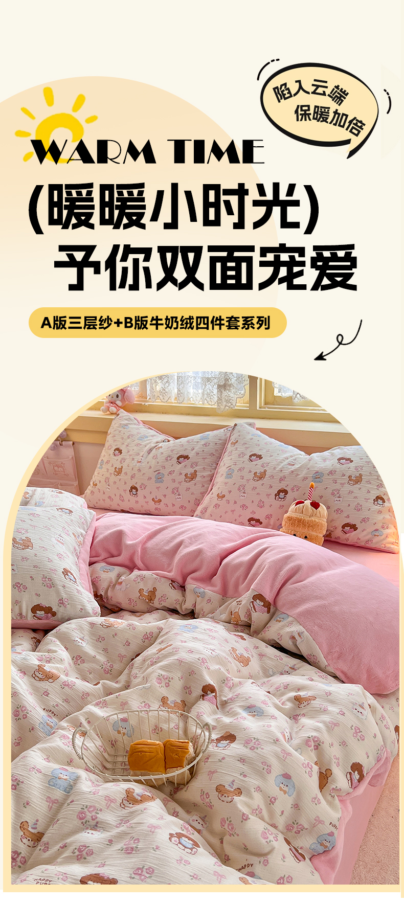 (总)瑞钰 2025新款A类加厚牛奶绒印花四件套,背带兔,草莓软心,繁花似梦,蝴蝶点点心,可可猫星,蜡笔心,蓝格英伦熊,卖萌小狗,梦幻,米珍珠,抹茶绿狗,绒绒小狗粉,绒绒小狗蓝,疏影,田间春彩-蓝,小美甜品屋,小兔舞,小小新,星空熊仔,枝枝兔