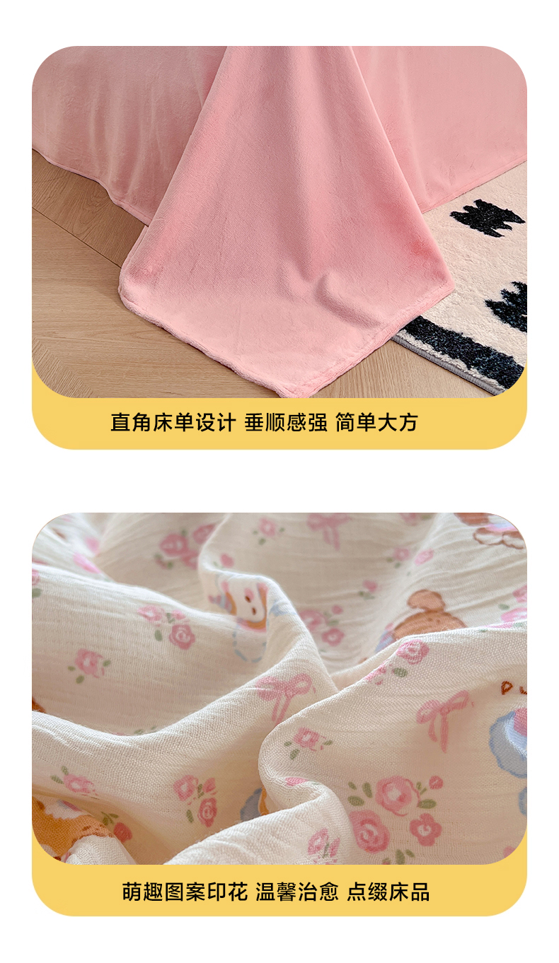 (总)瑞钰 2025新款韩版花边牛奶绒四件套,彩虹条条,代表月亮,格格猫咪,萌犬小队,少女猫咪,少女心事,甜甜蛋卷,童话集,小兔故事会,小兔乐园,小熊来信,星星少女