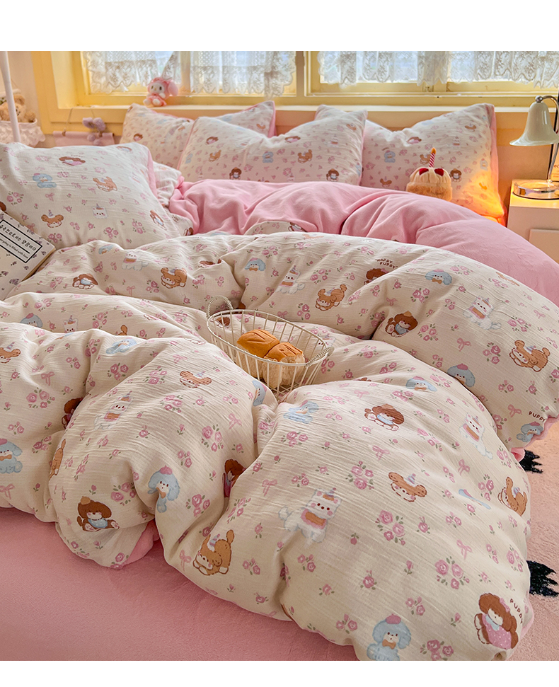 (总)瑞钰 2025新款A版三层纱B版牛奶绒四件套系列,动物团团,粉黛,复古修狗,花丛点点猫,花间兔,碱水结,莫奈-咖,沐风,南瓜派,葡萄腊肠狗,糖豆腊肠狗,小花点点,撄桃蝴蝶,雨爱,紫萱