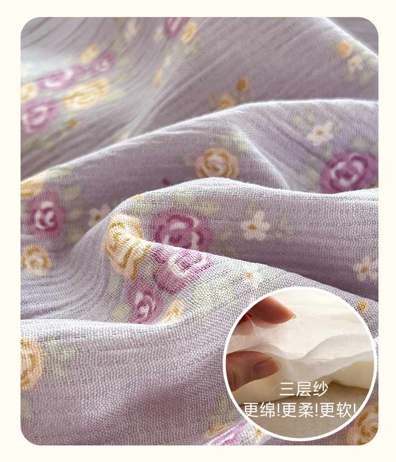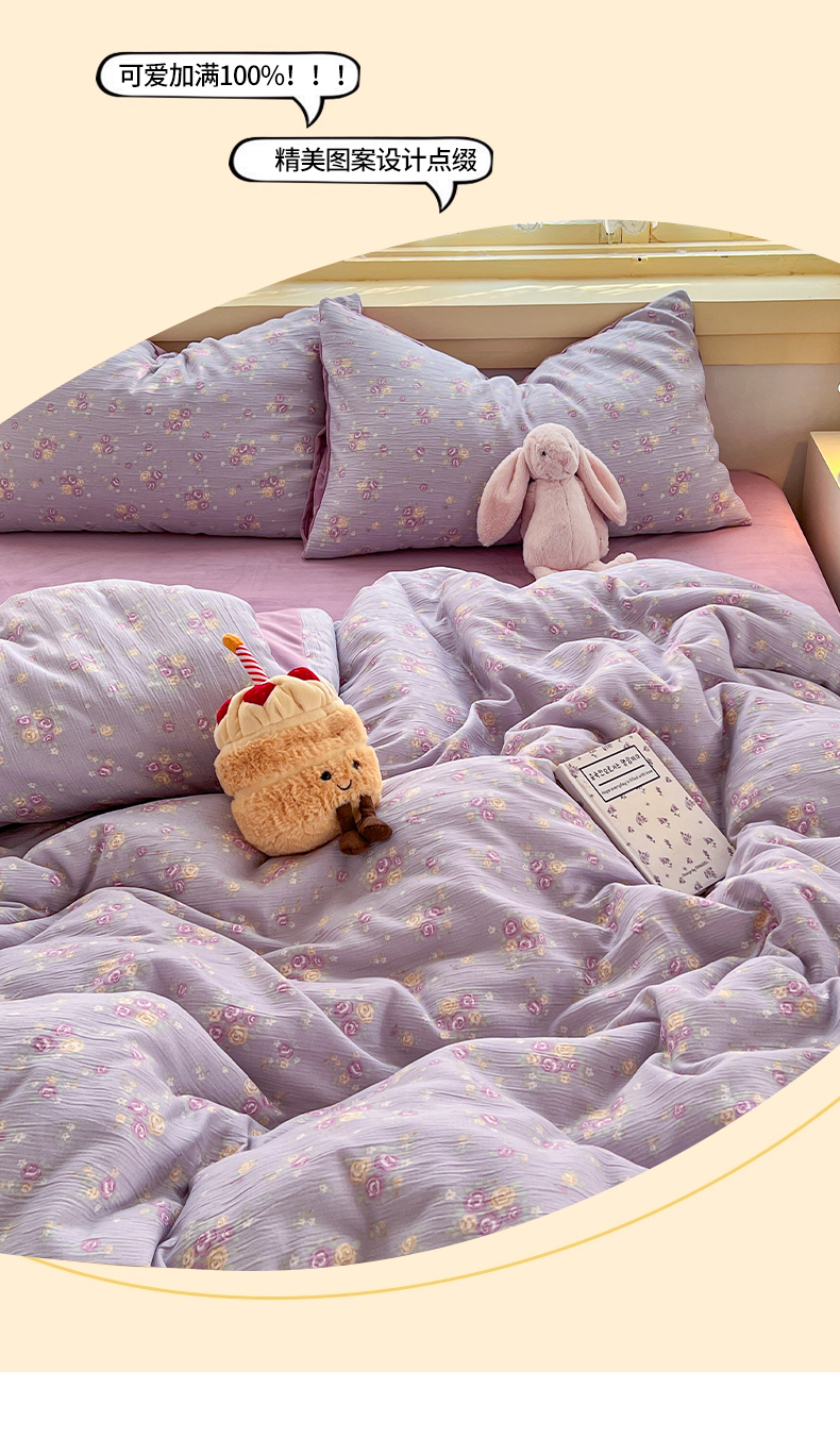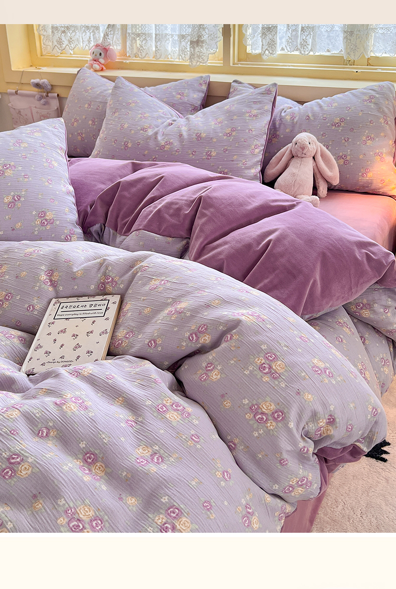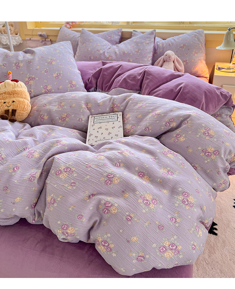 商品名称:瑞钰 2025新款A版三层纱B版牛奶绒四件套系列 紫萱