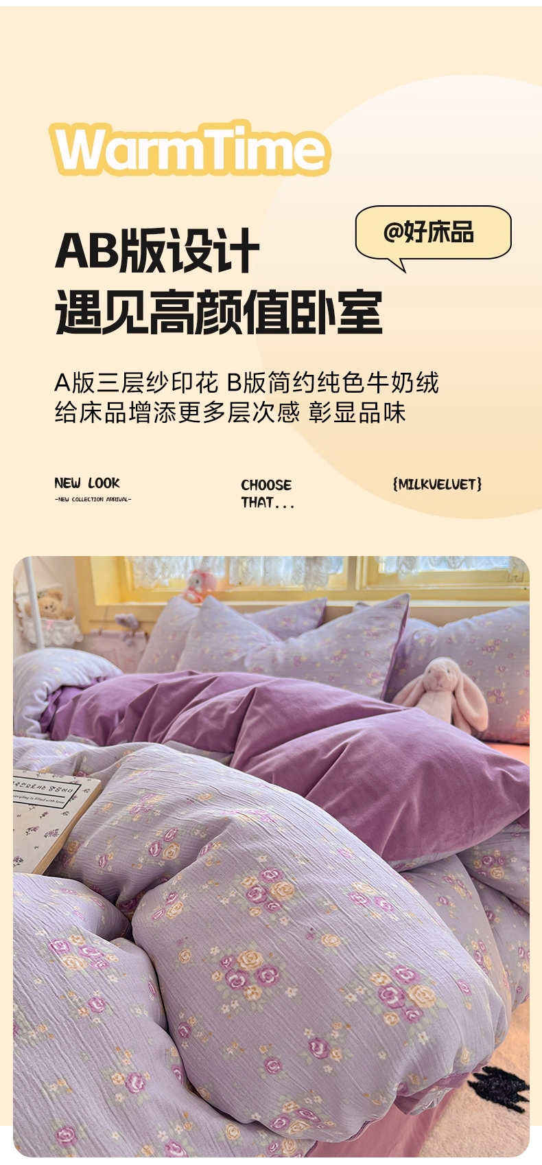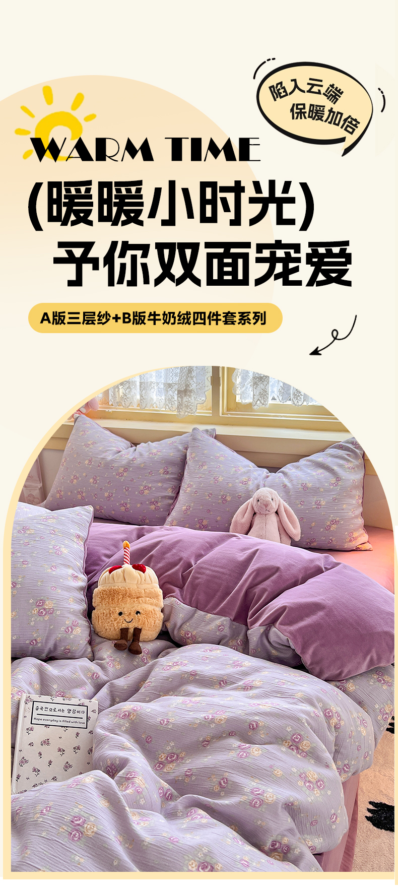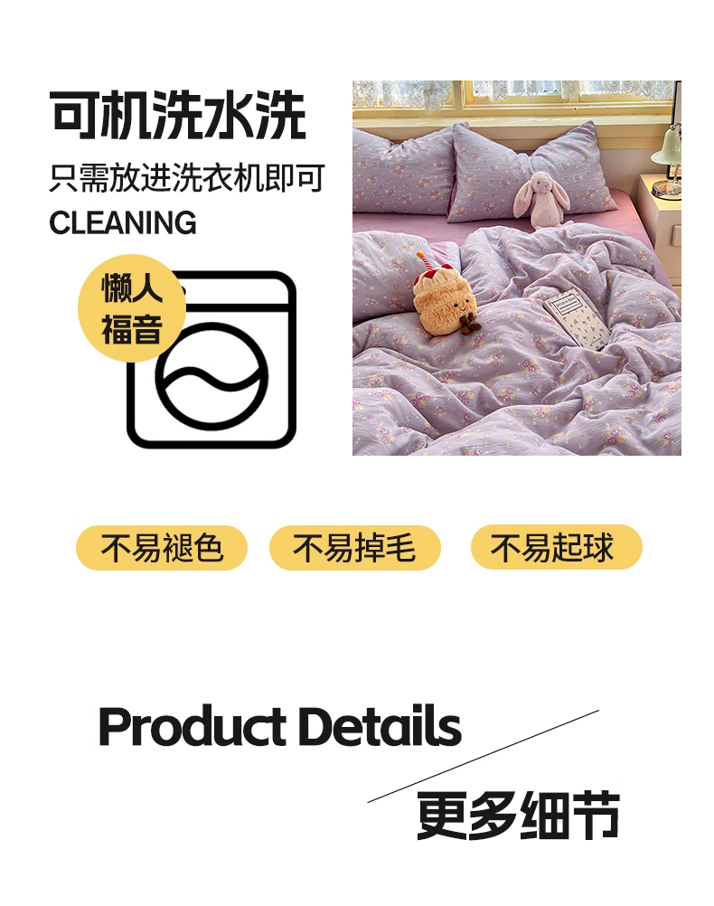 商品名称:瑞钰 2025新款A版三层纱B版牛奶绒四件套系列 紫萱