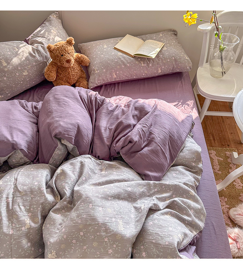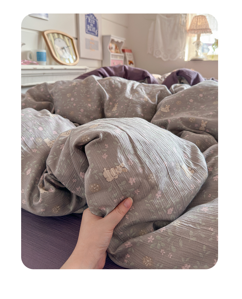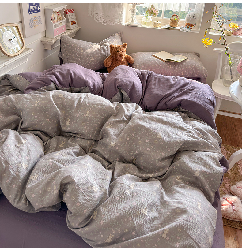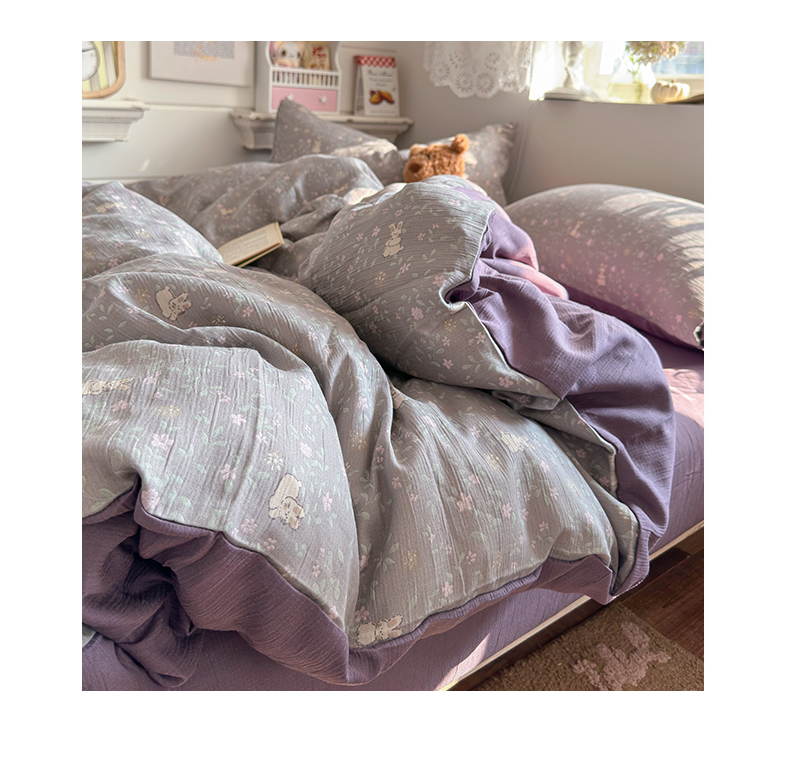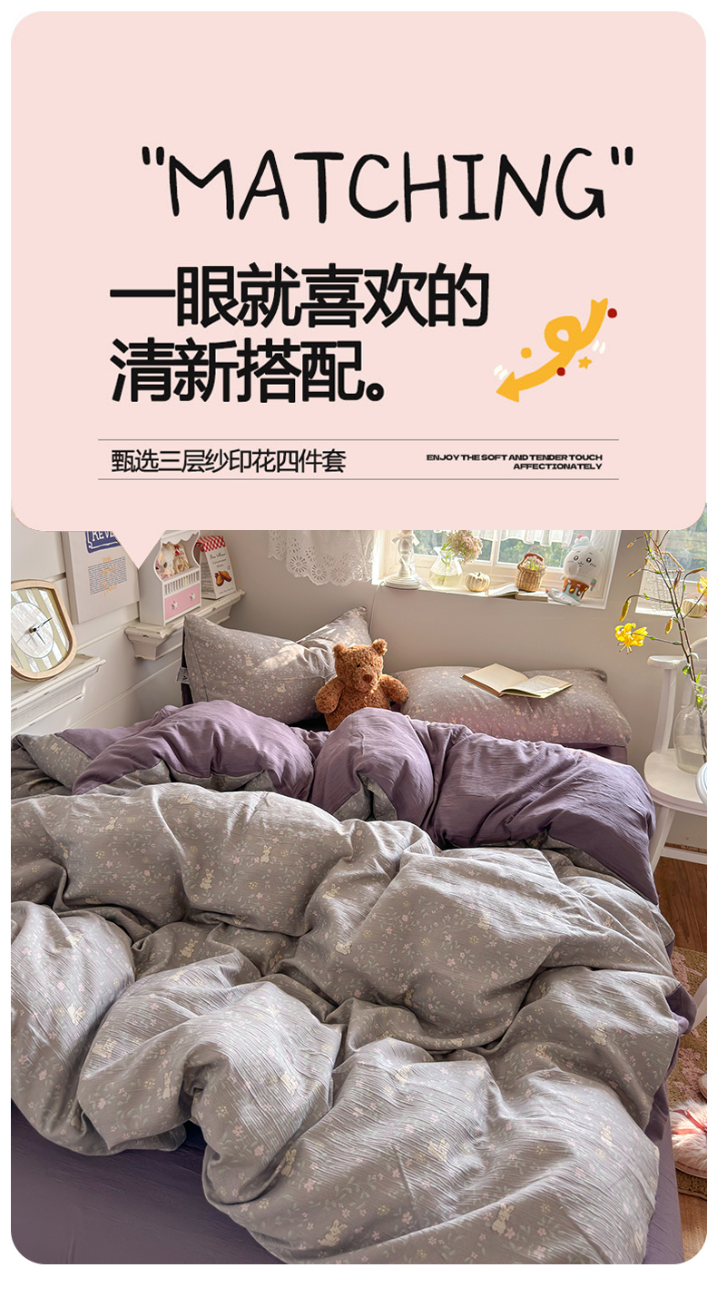 当前位置: 91家纺网 > 商品网购 > 床品套件 > 四件套 > 其它四件套 > 玉海棠家纺 2025新款甄选三层纱印花四件套 花间兔