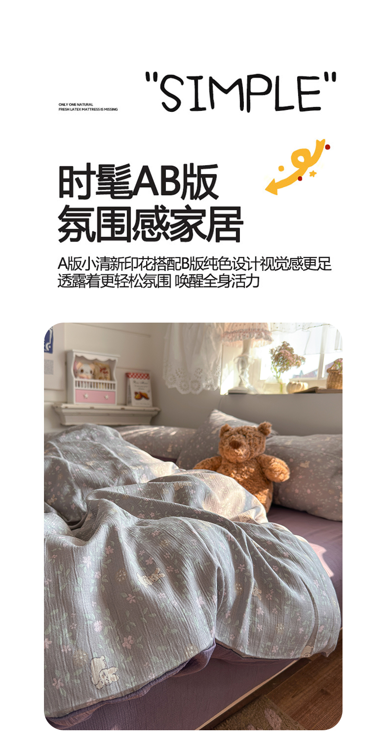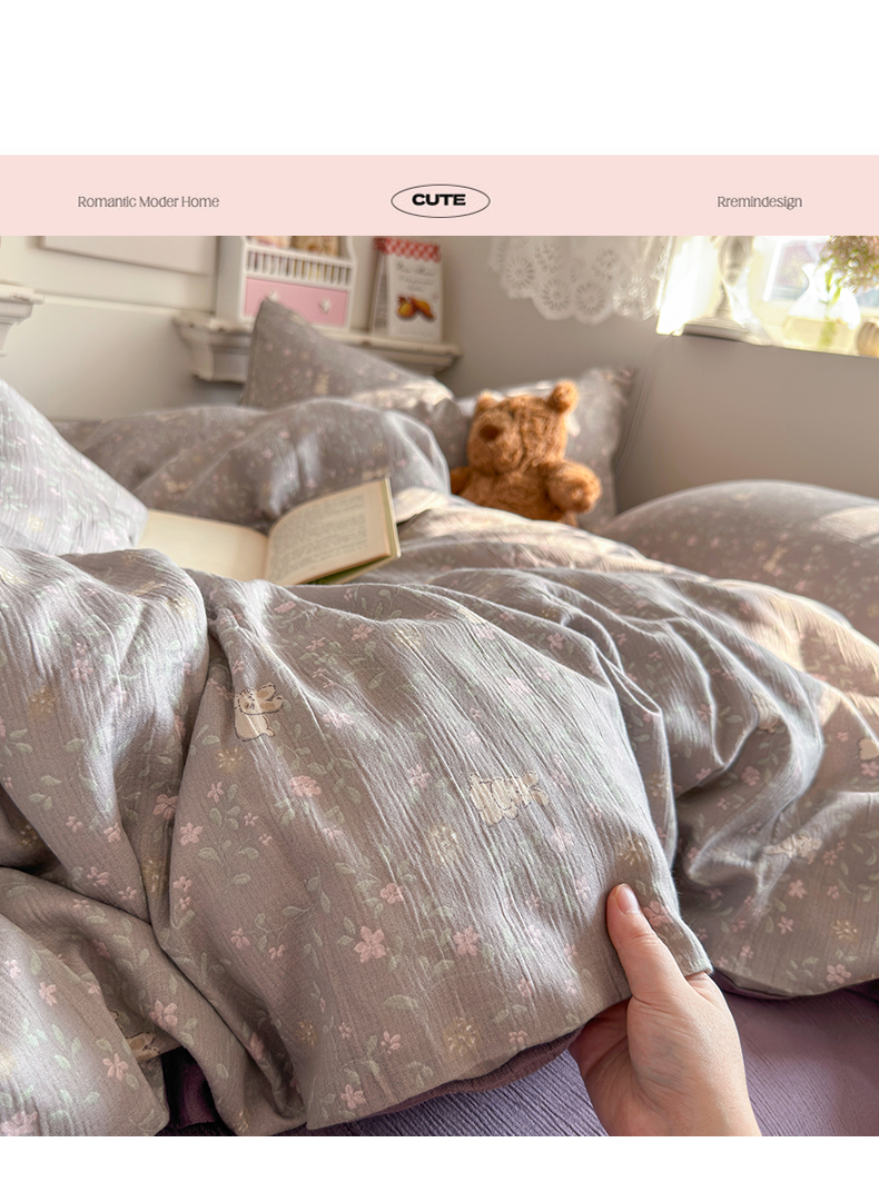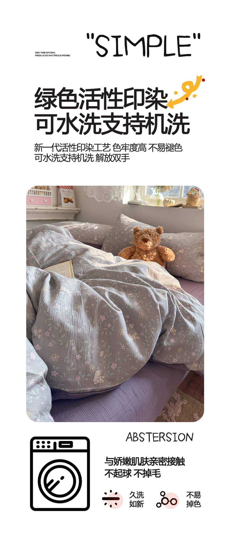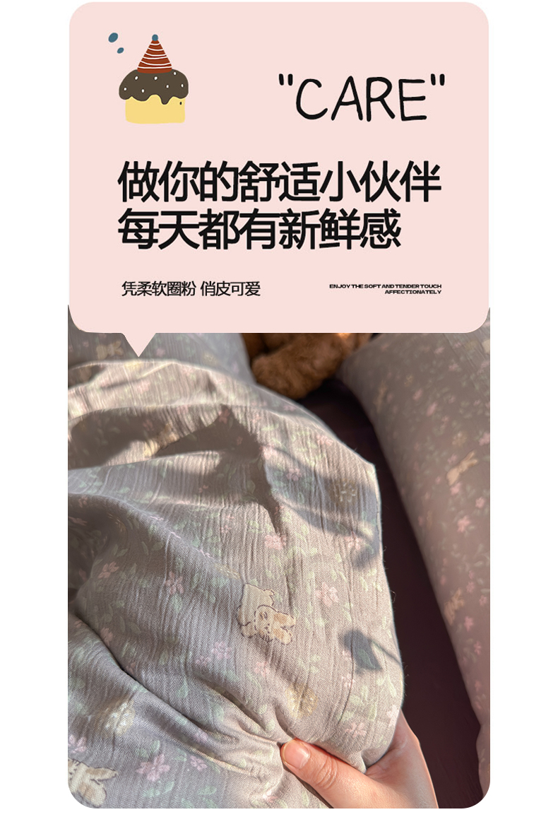 当前位置: 91家纺网 > 商品网购 > 床品套件 > 四件套 > 其它四件套 > 玉海棠家纺 2025新款甄选三层纱印花四件套 花间兔