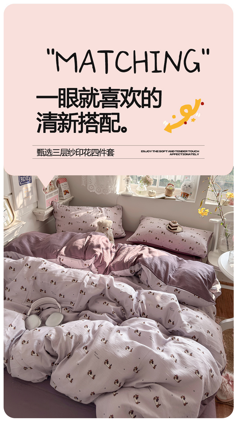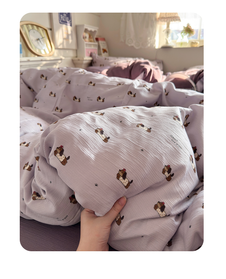 当前位置: 91家纺网 > 商品网购 > 床品套件 > 四件套 > 其它四件套 > 玉海棠家纺 2025新款甄选三层纱印花四件套 葡萄腊肠狗