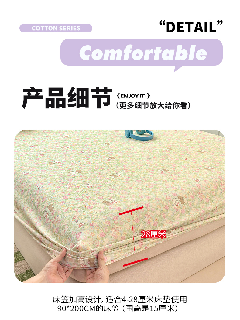 当前位置: 91家纺网 > 商品网购 > 床上用品 > 床笠 > 拾物记 2026新款第一批12868A类全棉单品床笠系列(床笠宽度预留10厘米缩水尺寸, 90x200床笠高度15厘米,适合4-15厘米学生床垫使用,其他尺寸床笠高28cm 适合4-28厘米床垫使