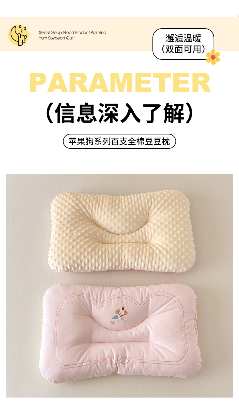 商品名称:(总)北鸣有鱼枕芯馆 2025新款苹果狗系列100S全棉豆豆枕枕头枕芯