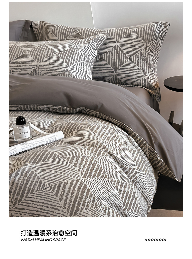 锦彩家居 2025新款A类60支全棉色织提花四件套-复古风系列 几何菱形-灰色