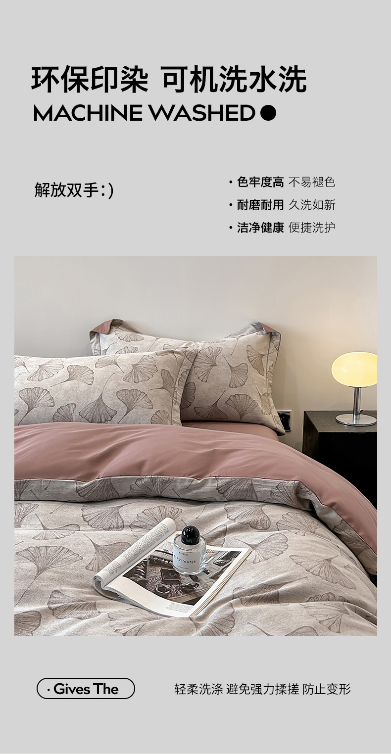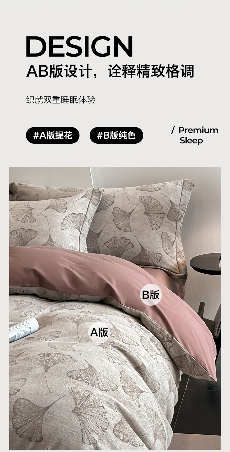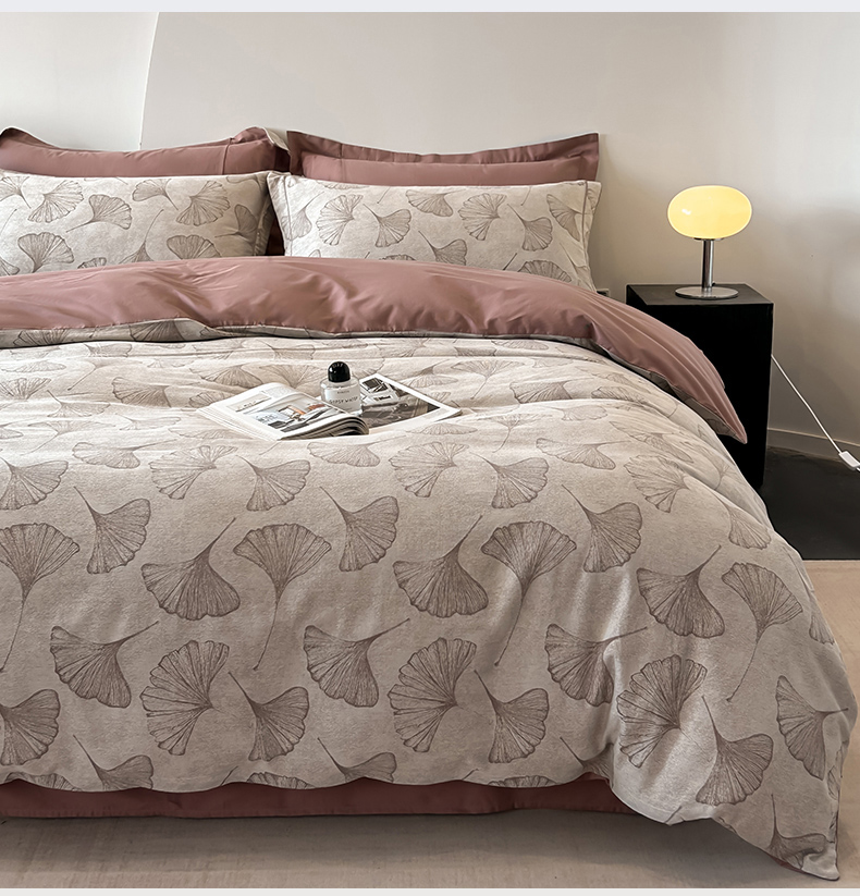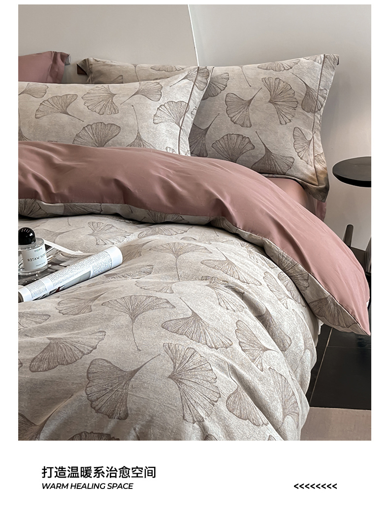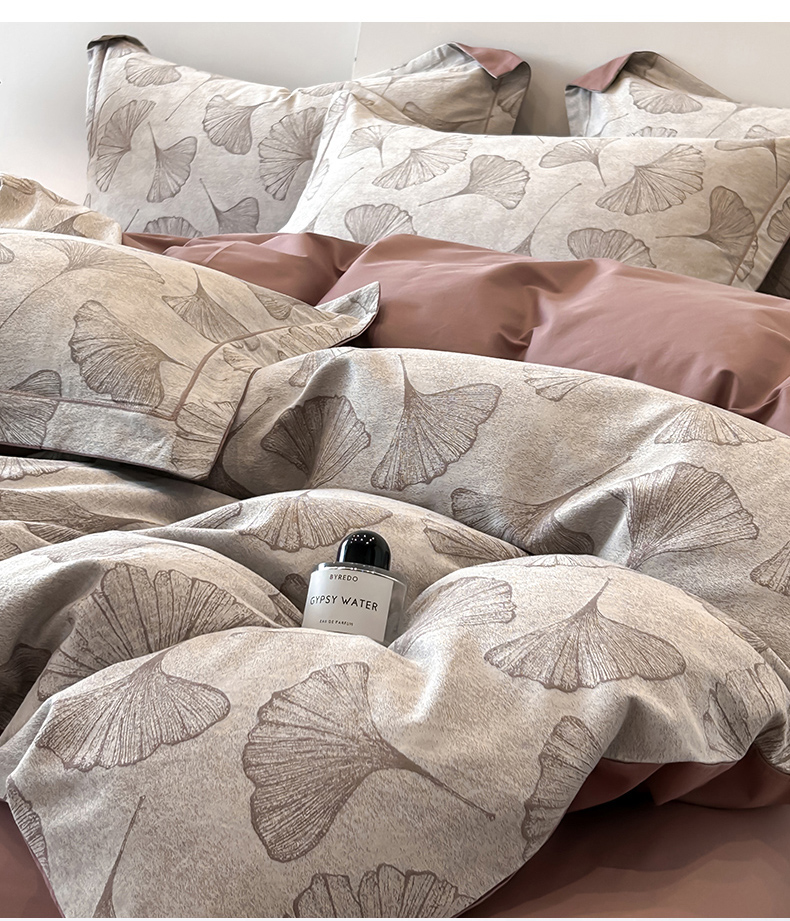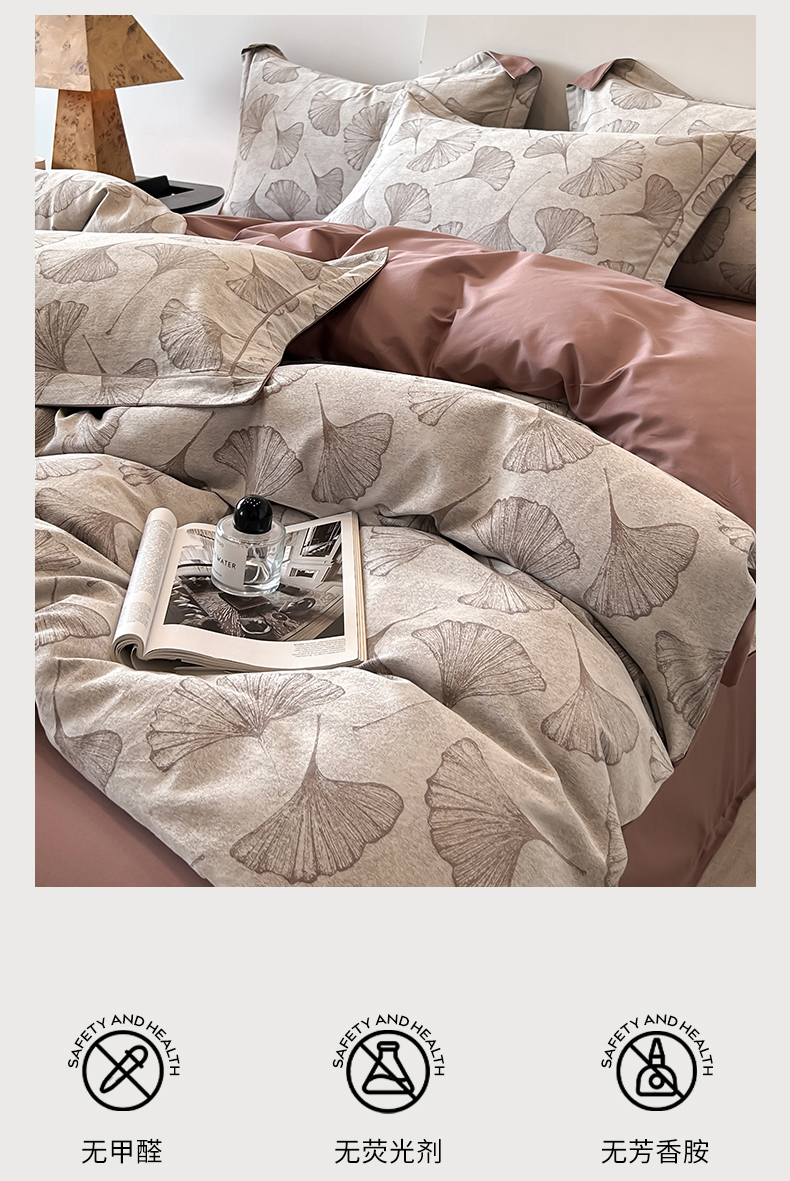 锦彩家居 2025新款A类60支全棉色织提花四件套-复古风系列 银杏叶-豆沙