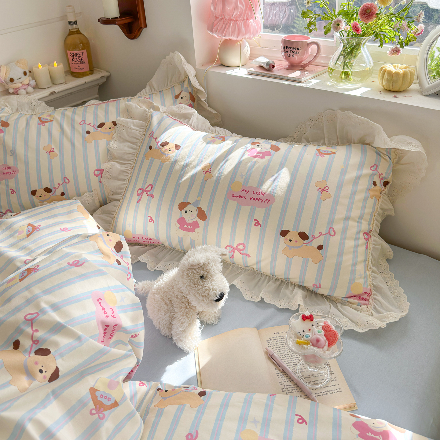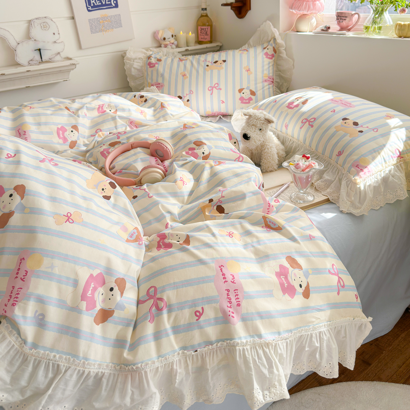 (总)锦彩家居 2026新款全棉数码印花卡通花边款三件套四件套INS小红书博主风(提供买家秀),花蕾猫咪,小猫椰椰,小狗密码,云朵小熊,萌宠派对
