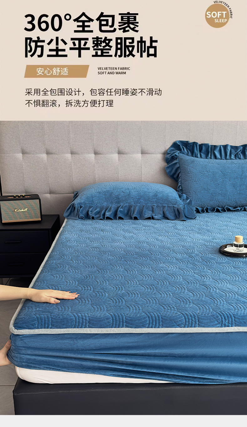 爱彼家纺 2025冬季新款水晶宝宝绒床笠单品床笠床笠单件床笠三件套 宝宝绒床笠-宝兰