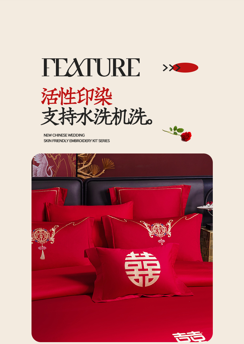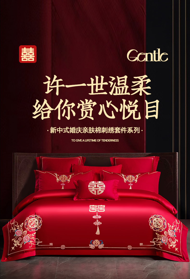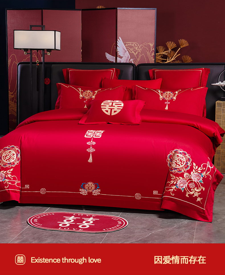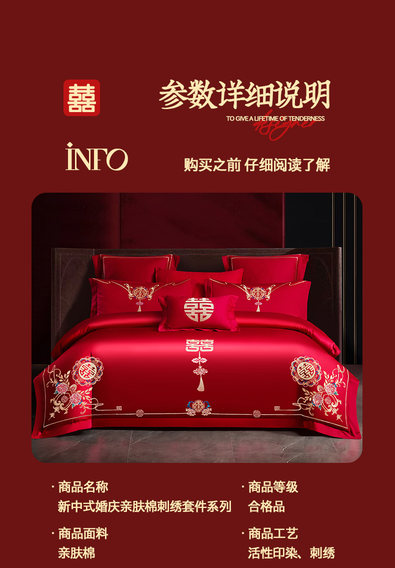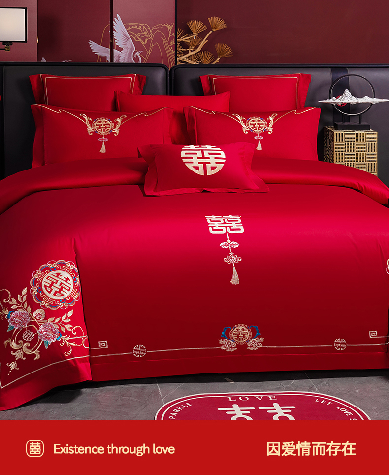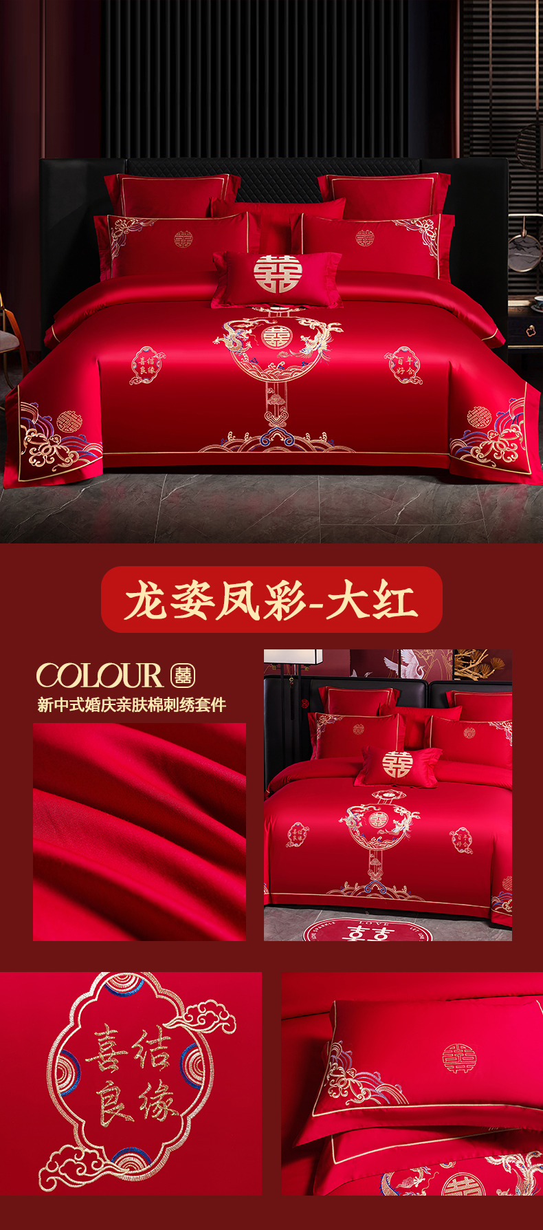 当前位置: 91家纺网 > 商品网购 > 床品套件 > 四件套 > 婚庆四件套 > 置顶家纺 2025新款新中式棚拍亲肤棉婚庆大红刺绣系列四件套 喜结连理-大红