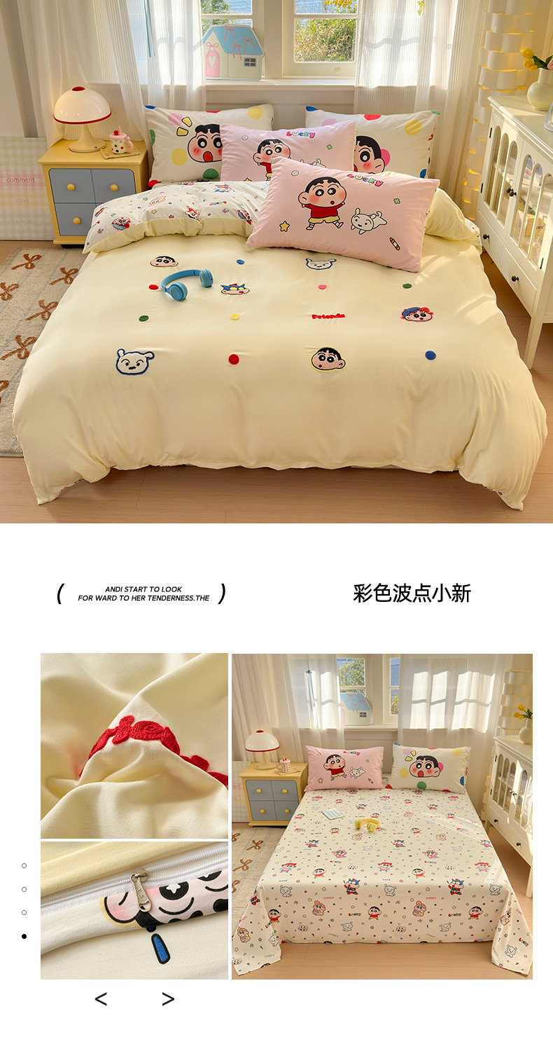 当前位置: 91家纺网 > 商品网购 > 床品套件 > 四件套 > 其它四件套 > 三元色 2025新款云朵棉毛巾绣小新系列四件套 彩色波点小新