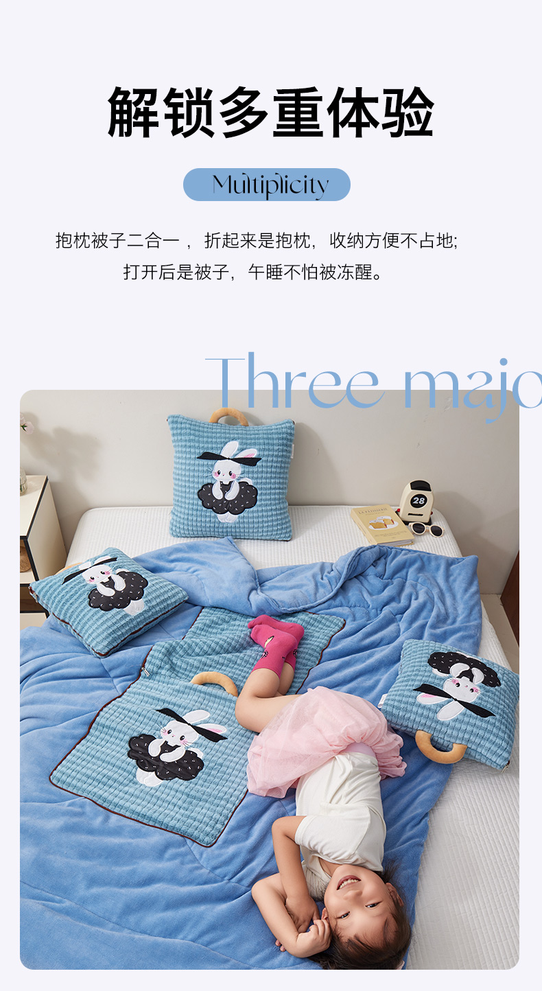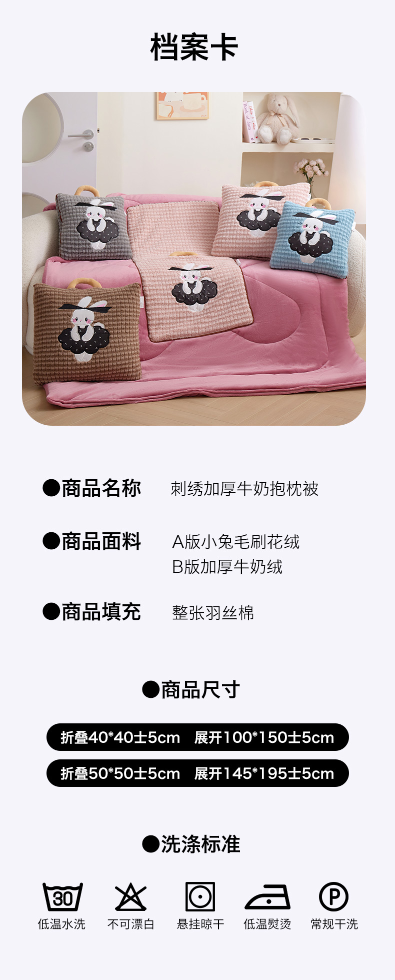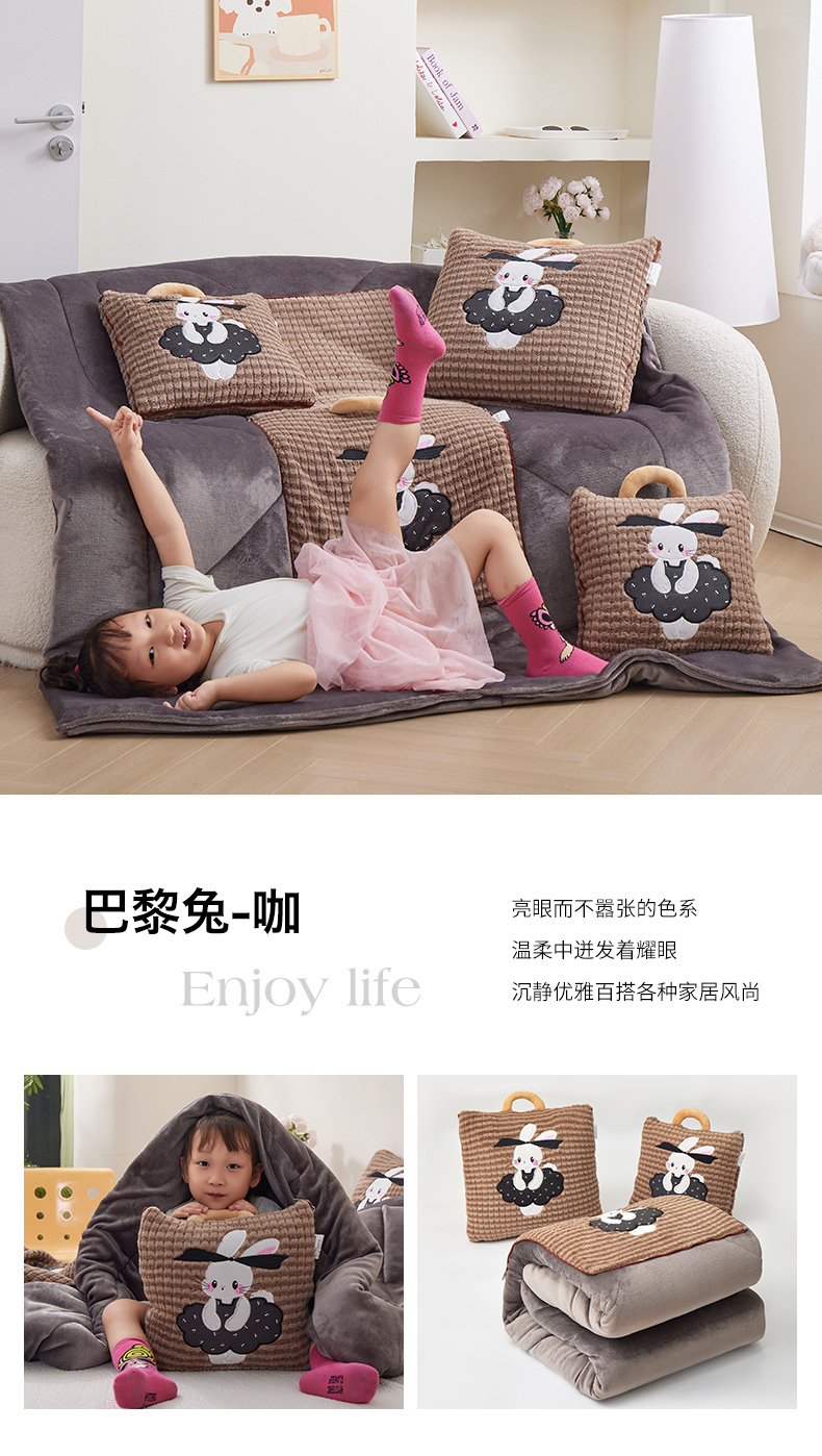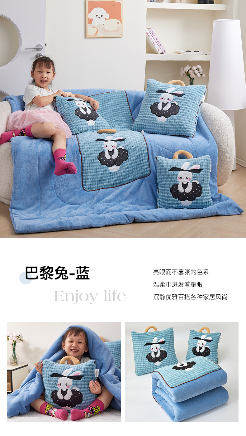 (总)宝马家纺(原梦童画) 2025新款加厚巴黎兔抱枕被,巴黎兔-蓝,巴黎兔-粉,巴黎兔-灰,巴黎兔-咖,组合图