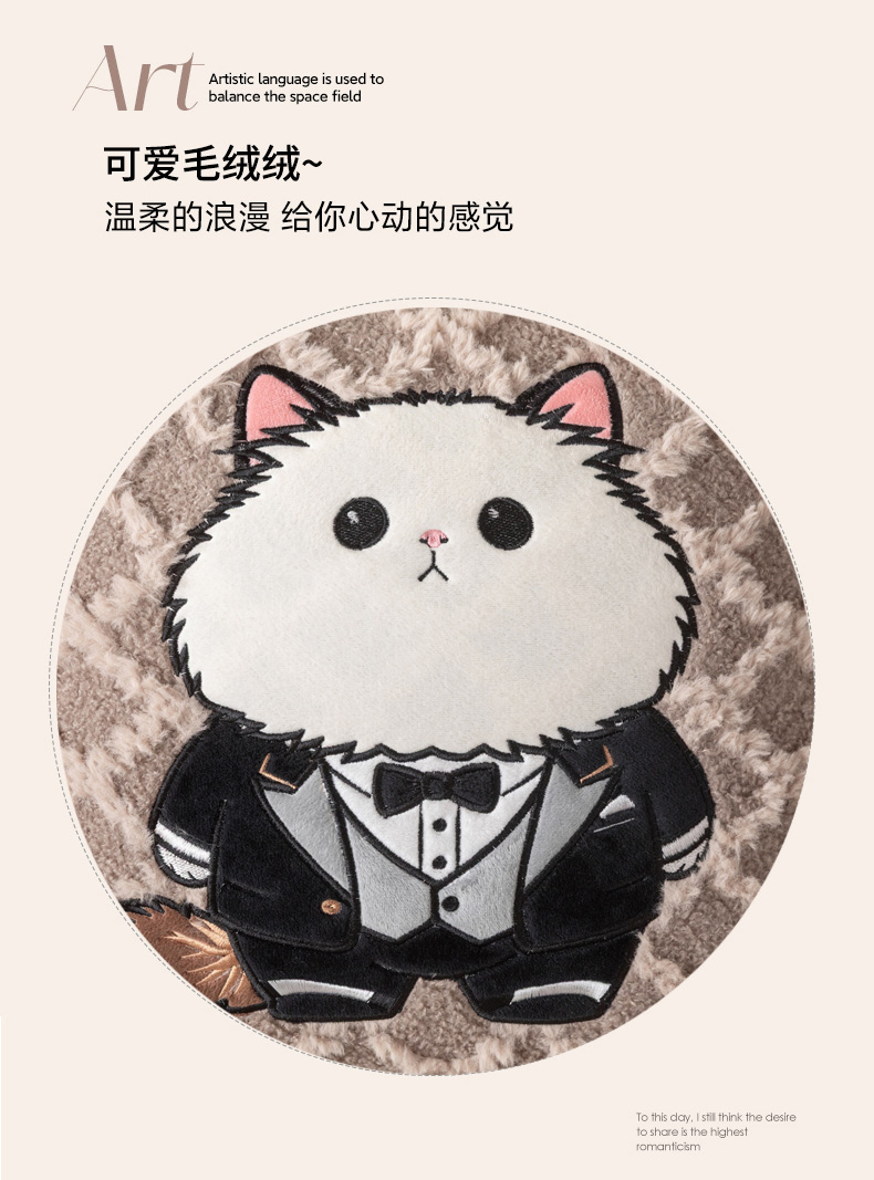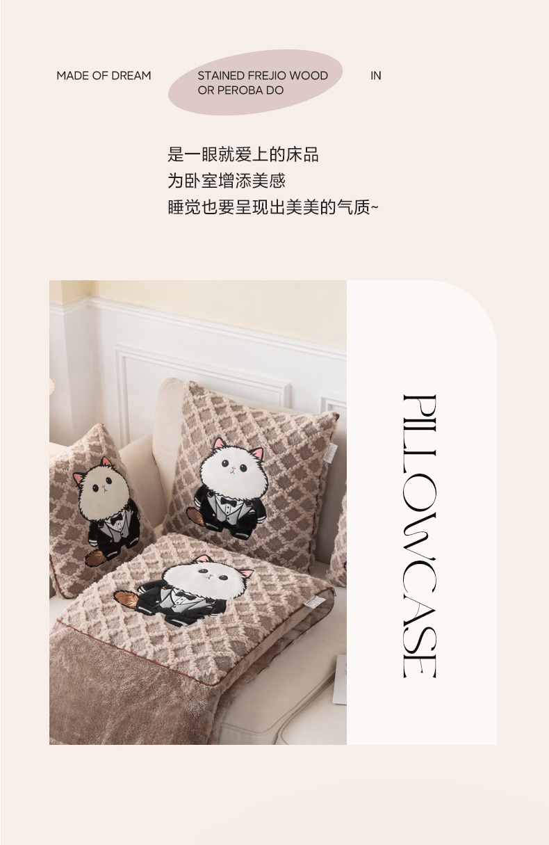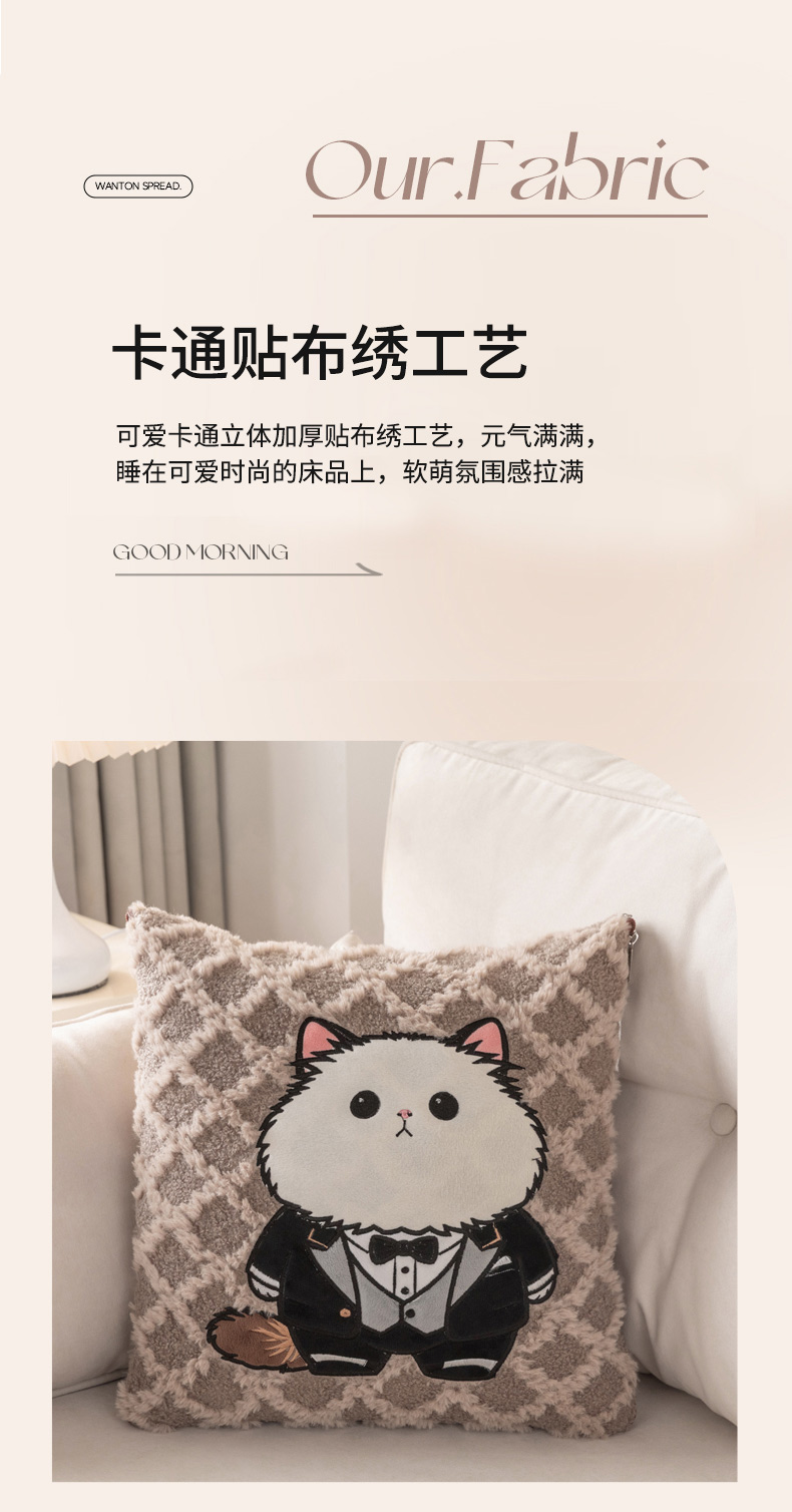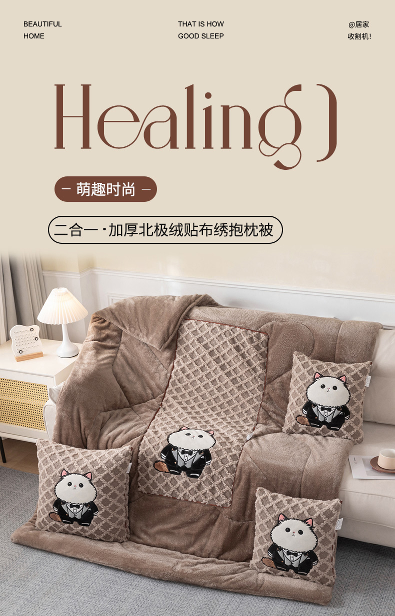 (总)宝马家纺(原梦童画) 2025新款牛奶绒贴布绣抱枕被可爱猫咪,猫咪-咖