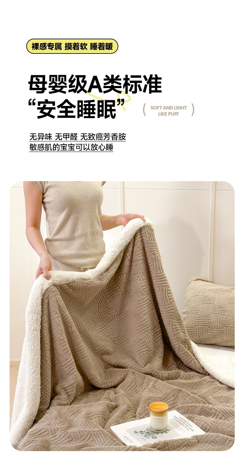 (总)慕木2025新款A类提花节节高加厚云感绒&羊羔绒双层毛毯系列(跨境爆款抽空压缩) 提供买家秀,节节高-月岩灰,节节高-云境蓝,节节高-焦糖咖,节节高-胭脂粉,节节高-雪茄紫,节节高-茧月白