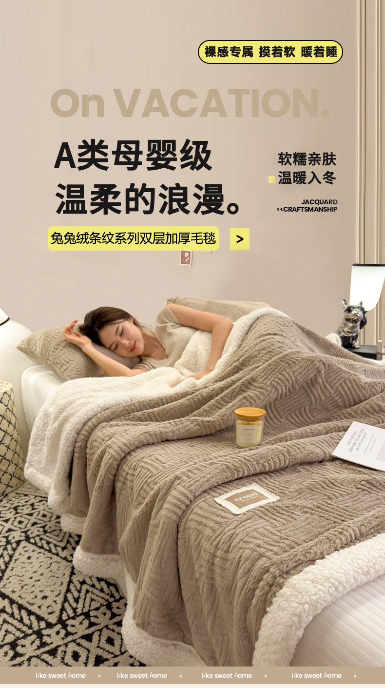(总)慕木家纺 2025新款A类高克重加厚兔毛绒双层毛毯斜纹条纹系列(跨境首选提供买家秀),兔兔绒-条纹-咖啡,兔兔绒-条纹-奶油黄,兔兔绒-斜纹-奶油黄,兔兔绒-斜纹-奶杏咖,兔兔绒-条纹-夜空灰,兔兔绒-条纹-仙女粉,兔兔绒-斜纹-咖啡,兔兔绒-条纹-奶杏咖,兔兔绒-斜纹-仙女粉,兔兔绒-斜纹-夜空灰