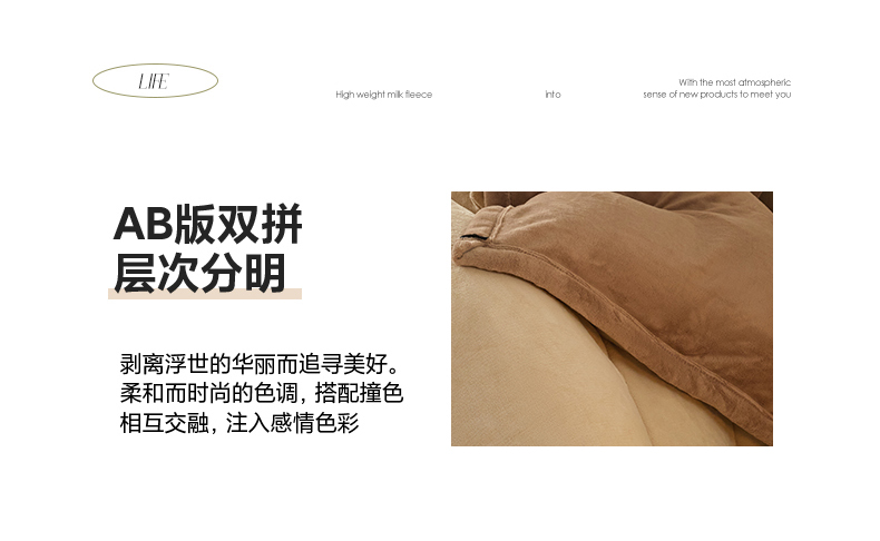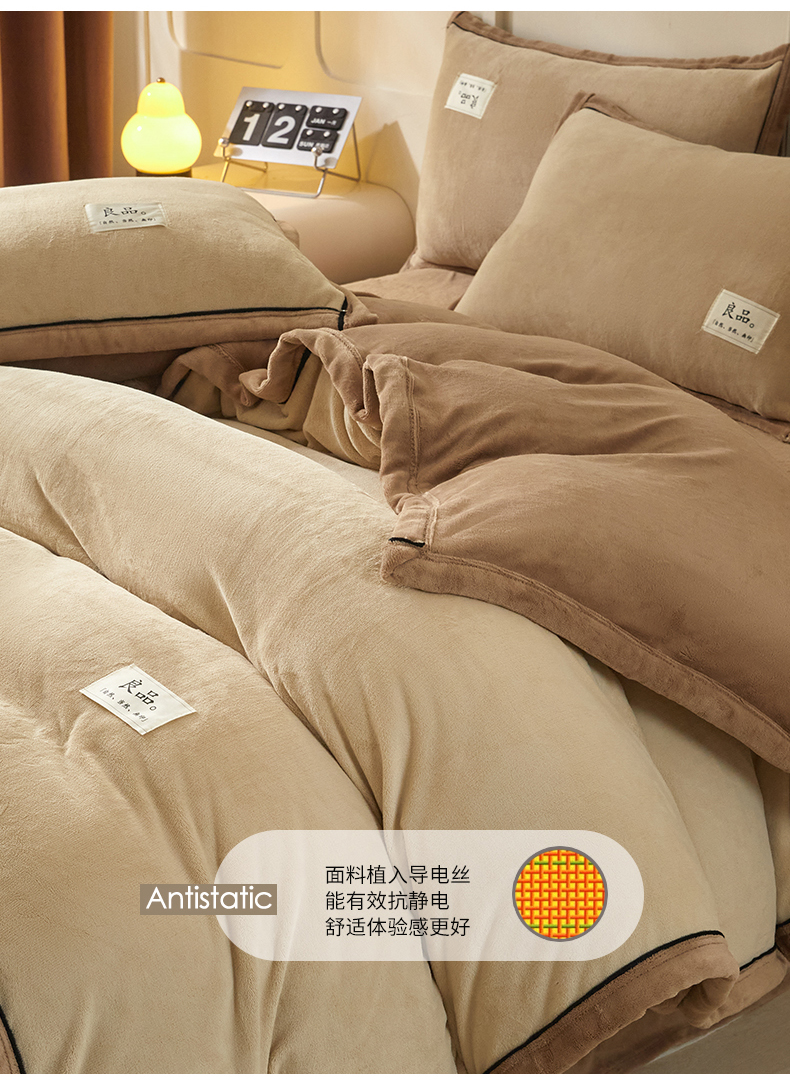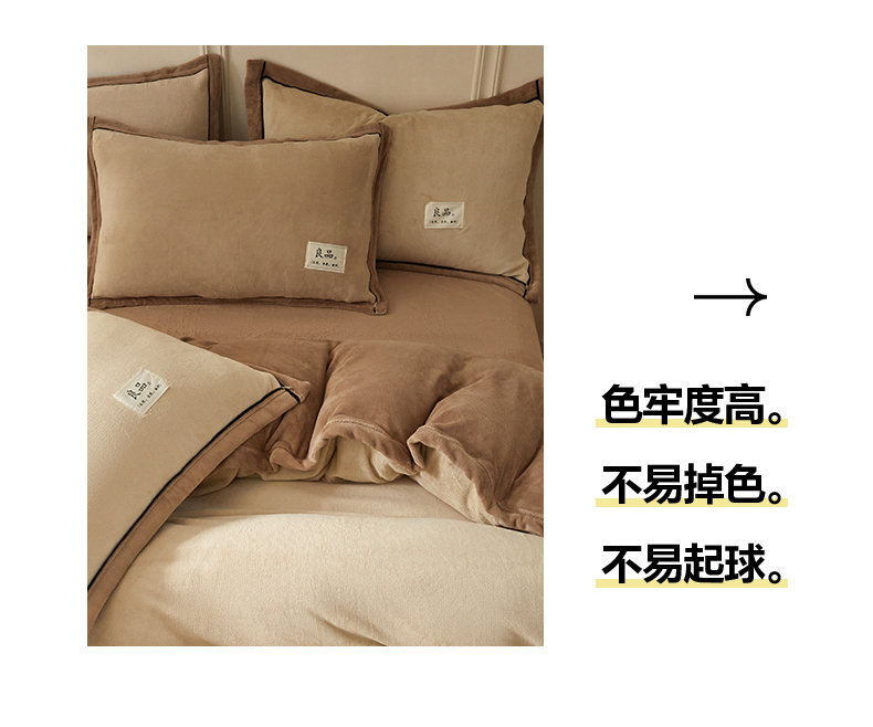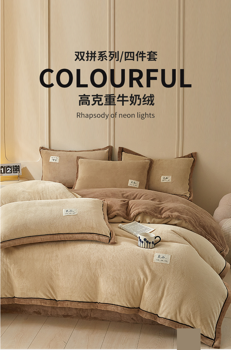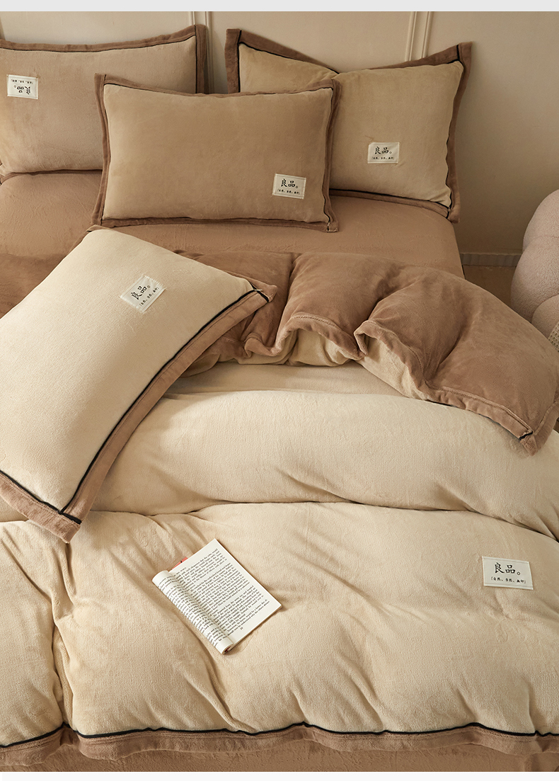 慕木家纺 2025新款高克重简约无印风牛奶绒双拼四件套 米驼+奶茶咖