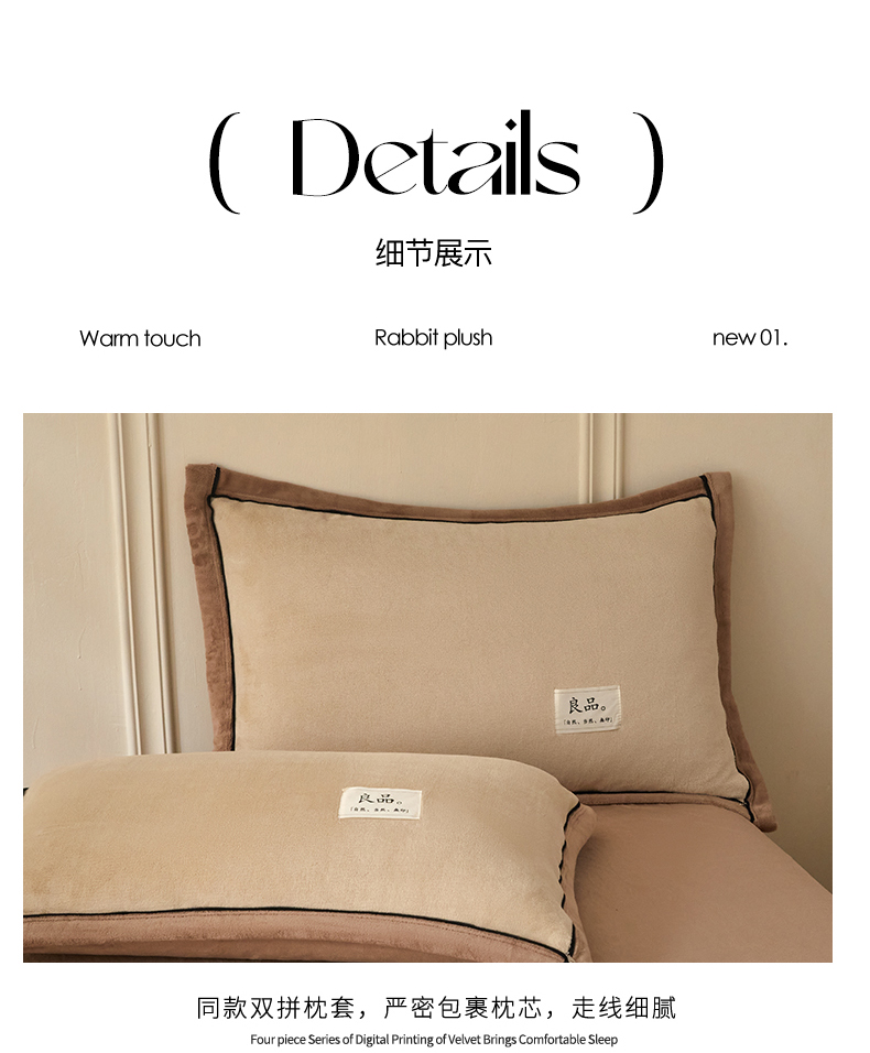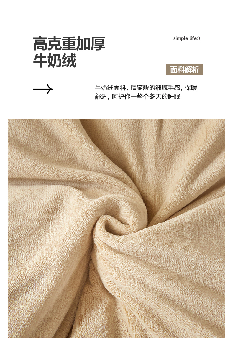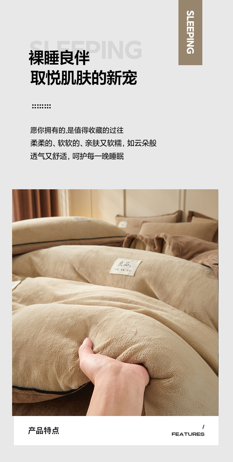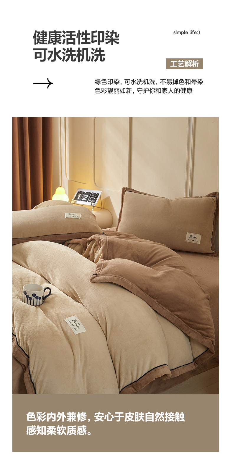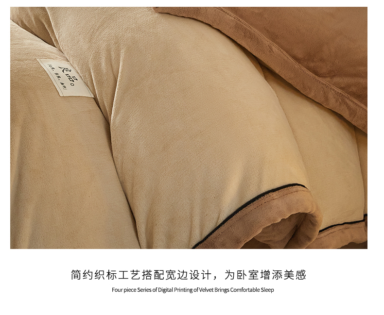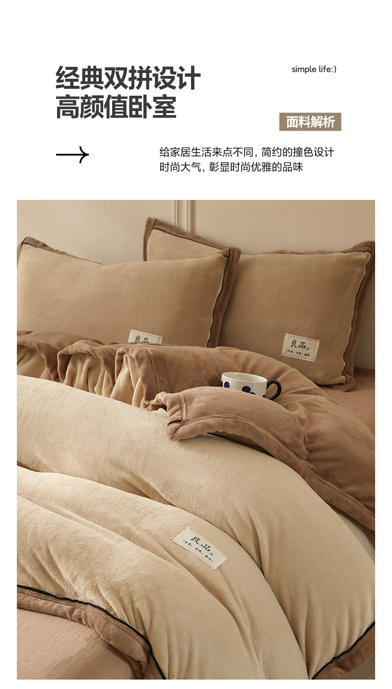商品名称:慕木家纺 2025新款高克重简约无印风牛奶绒双拼四件套 米驼+奶茶咖
