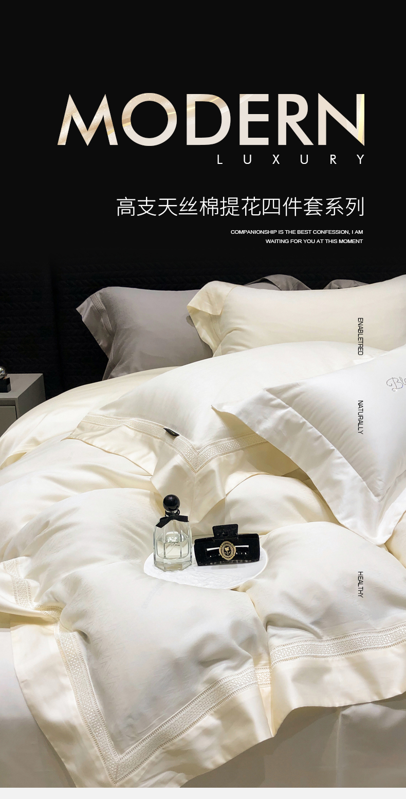 黑白森林2024款 100S支天丝棉提花四件套天丝全棉,芙拉维-裸灰,芙拉维-秋绿,圣露安-雾粉,圣露安-香槟,西西里-奶白,西西里-柔粉