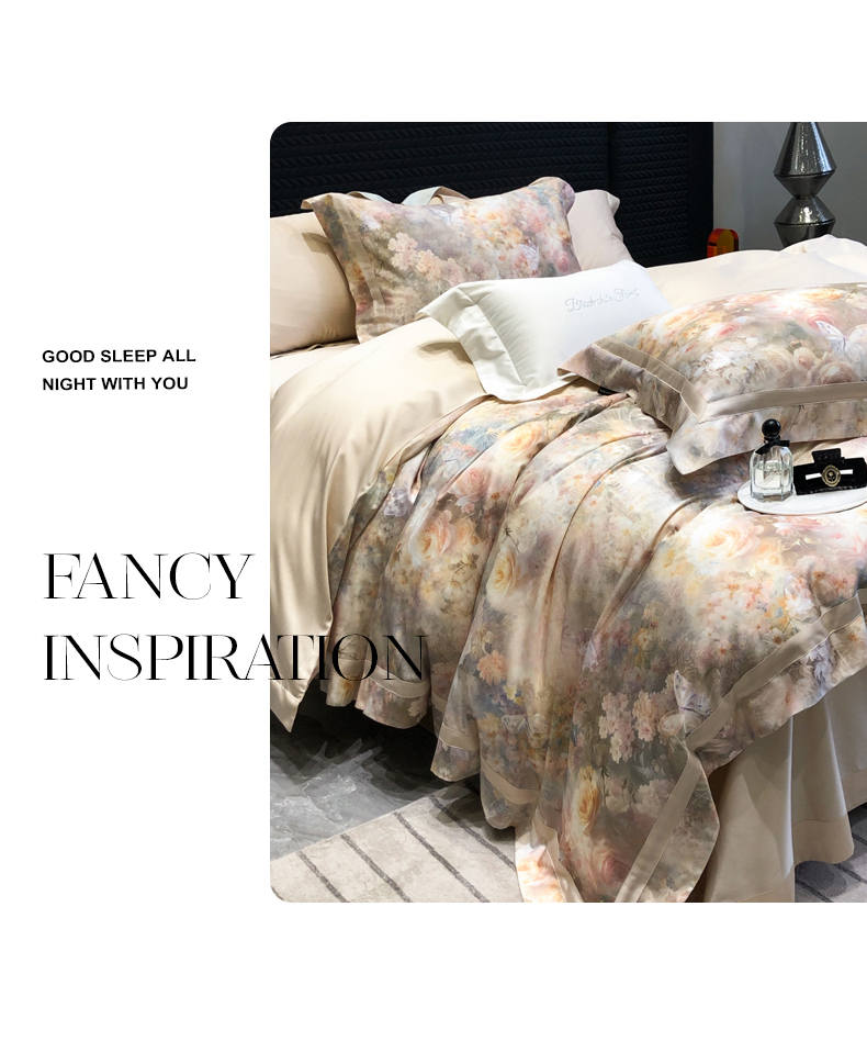 黑白森林 2025新款高支天丝棉数码印花 套件系列四件套 爱丁堡花园-驼