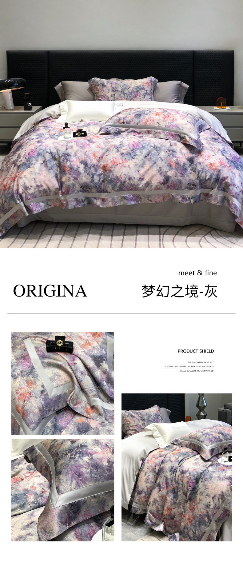黑白森林2024款 60S支兰精天丝数码印花四件套,朝颜,木槿,玉茗,春浅,京墨,半夏,丹若,繁缕,青黛,德琳-粉,德琳-绿,蒂娜-灰,蒂娜-紫,慧莉-粉,慧莉-绿,欧瑞,夏夜