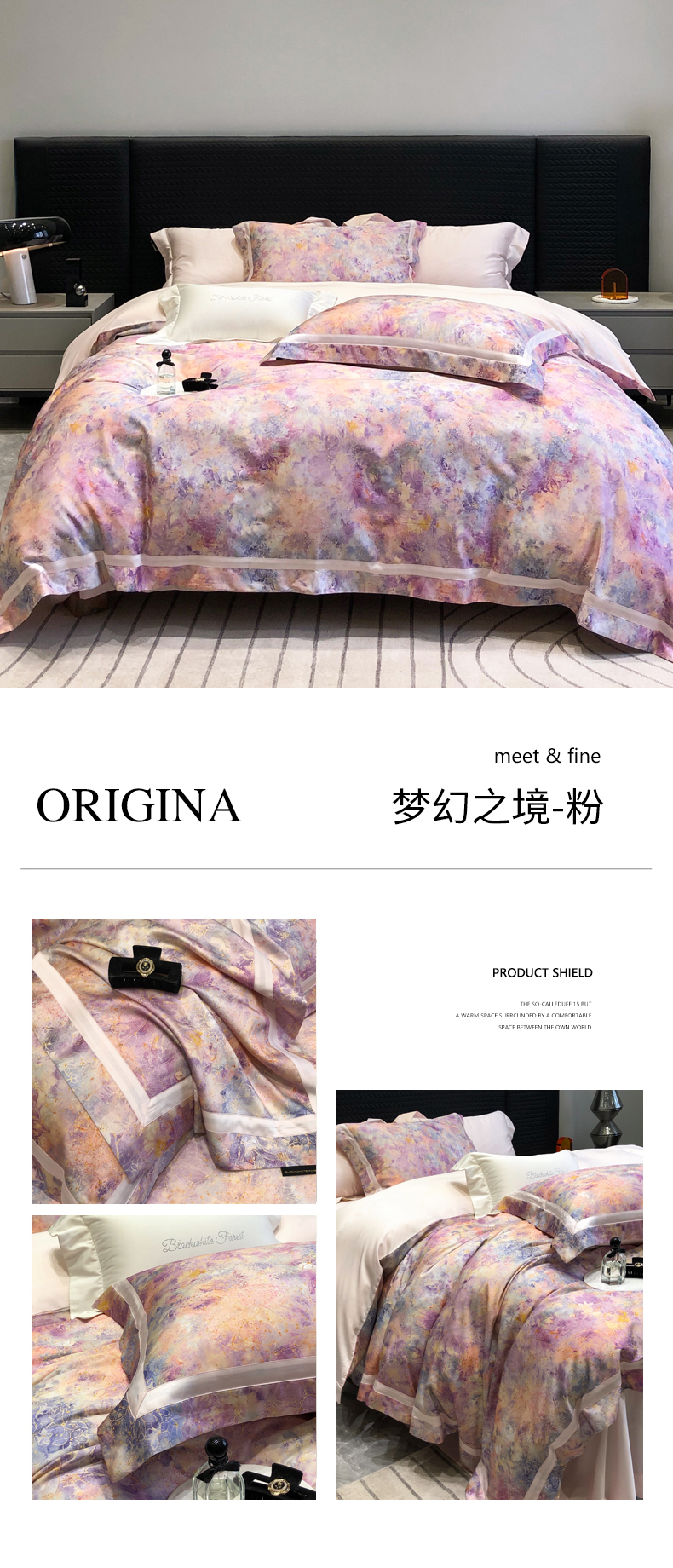 黑白森林2024款 50X50S高支天丝棉数码印花四件套天丝全棉,伊芙琳-粉,伊芙琳-蓝