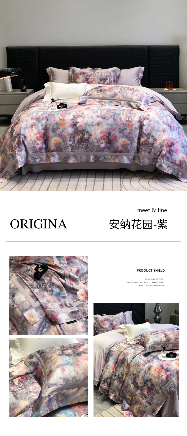 (总)黑白森林 2025新款高支天丝棉数码印花 套件系列四件套,爱丁堡花园-驼,爱丁堡花园-紫,安纳花园-绿,安纳花园-紫,梦幻之境-粉,梦幻之境-灰,梦幻之境-绿