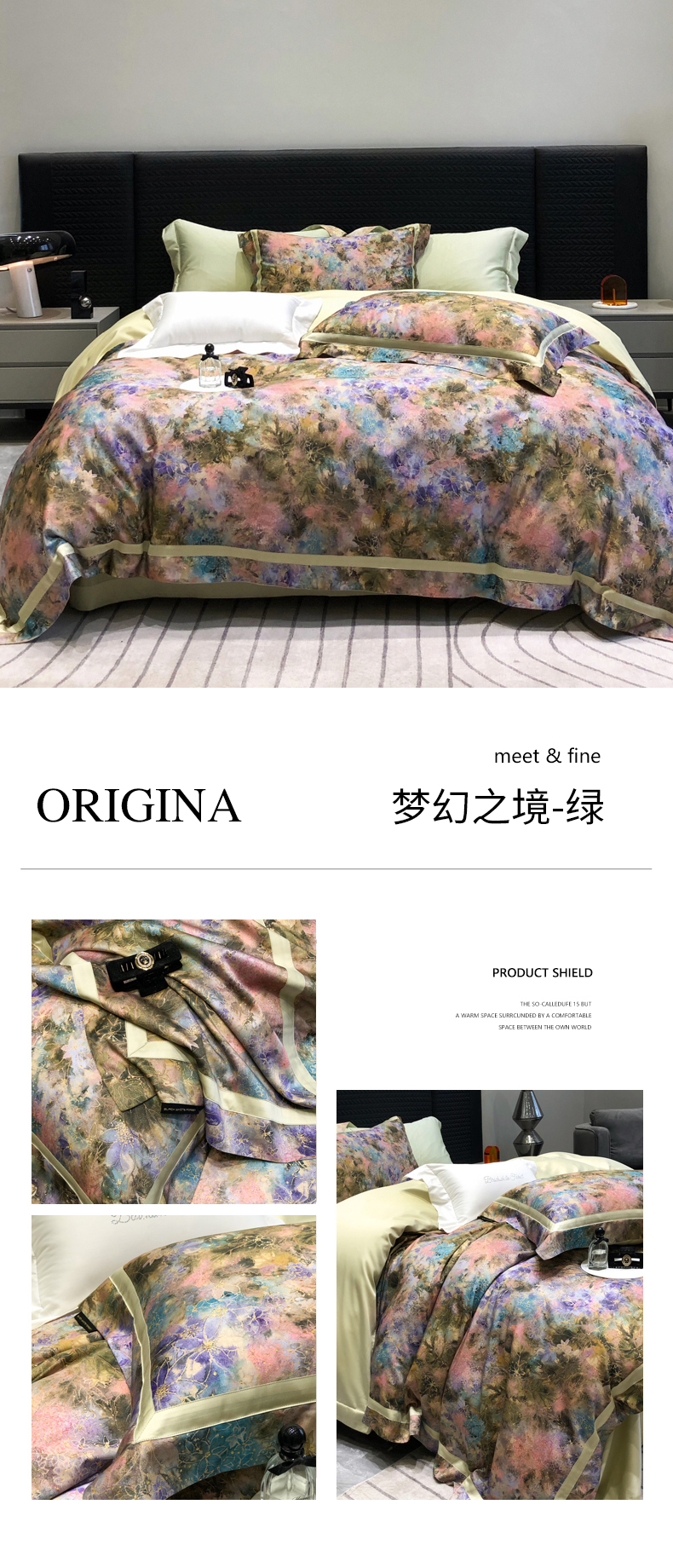 黑白森林2024款 50X50S高支天丝棉数码印花四件套天丝全棉,格伦黄,格伦绿,若瑶灰,羽笛蓝