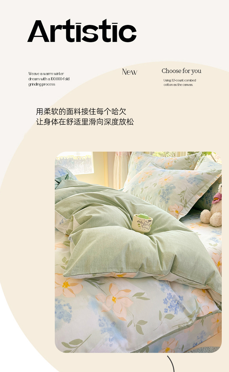 • 91家纺网 家纺一手货源 找家纺 莱通家纺 2026春夏新款全棉12868印花四件套单品系列-单被套 自然手记