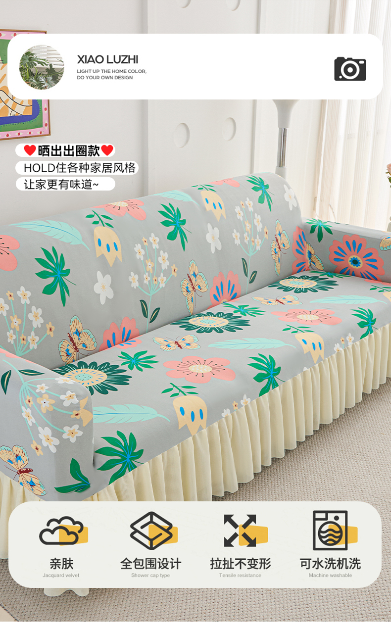 当前位置: 91家纺网 > 商品网购 > 居家布艺 > 坐垫/椅垫/沙发垫 > 沙发垫 > 兴俪韵家纺 2025新款裙边款图案双扶手沙发套 小熊猫