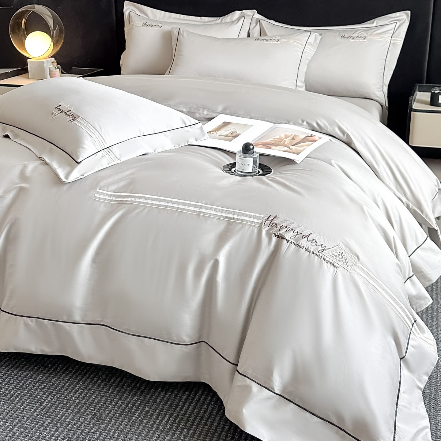 (总)【控价】新方向 2025新款刺绣全棉100s贡缎长绒棉四件套-往事,往事-爵士灰,往事-香槟