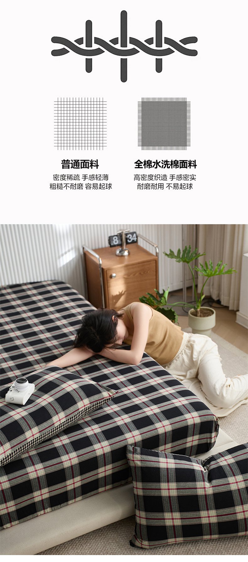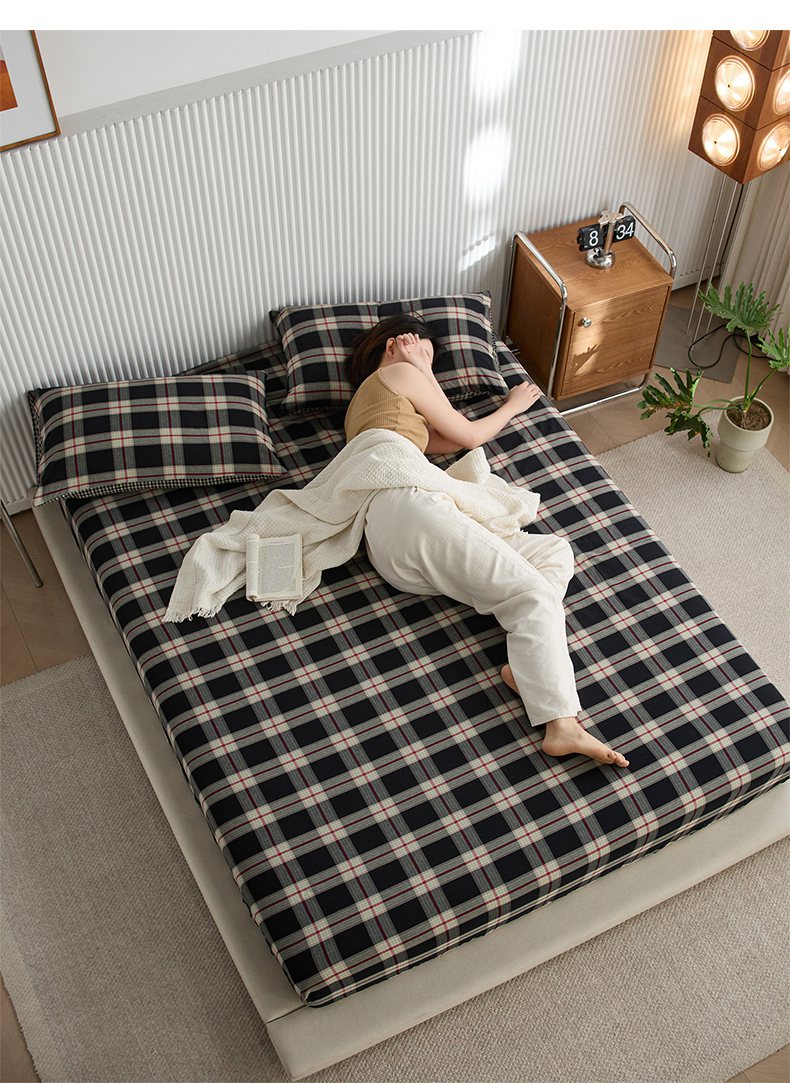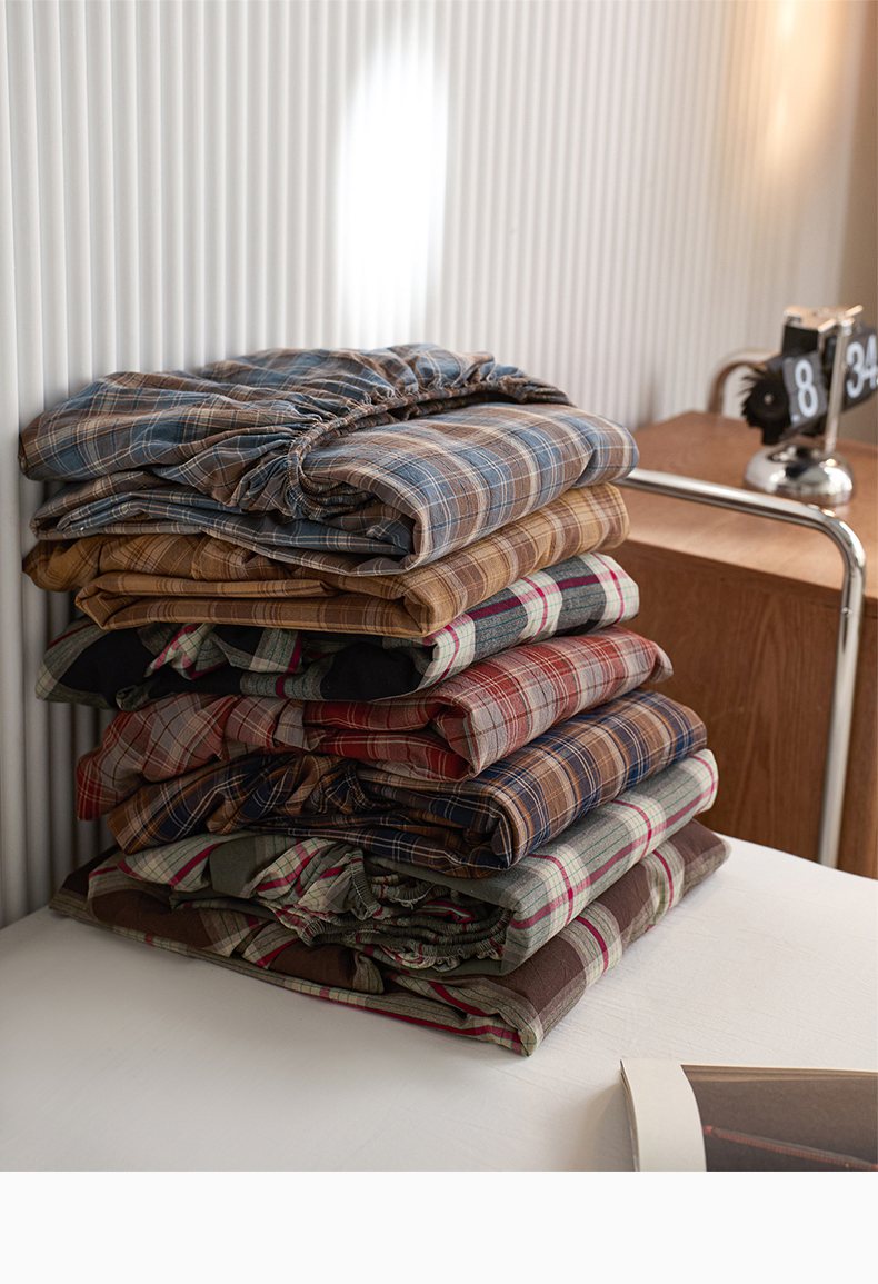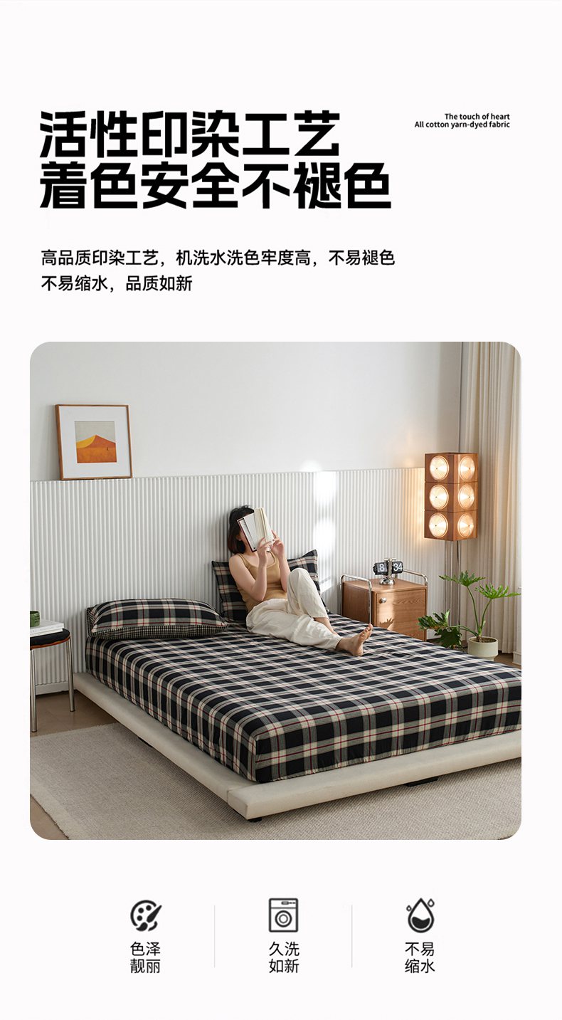 启程家纺 2026新款纯棉水洗棉复古大格系列多规格纯棉床笠 摩登大咖