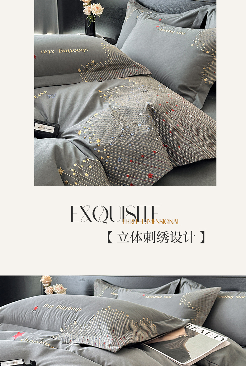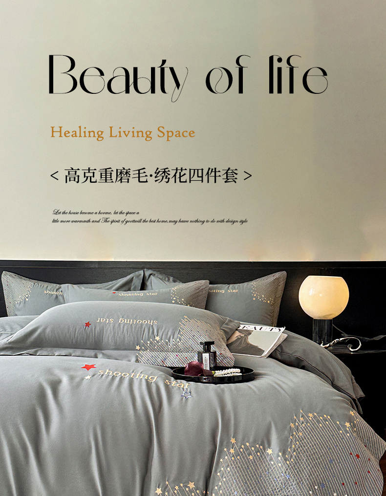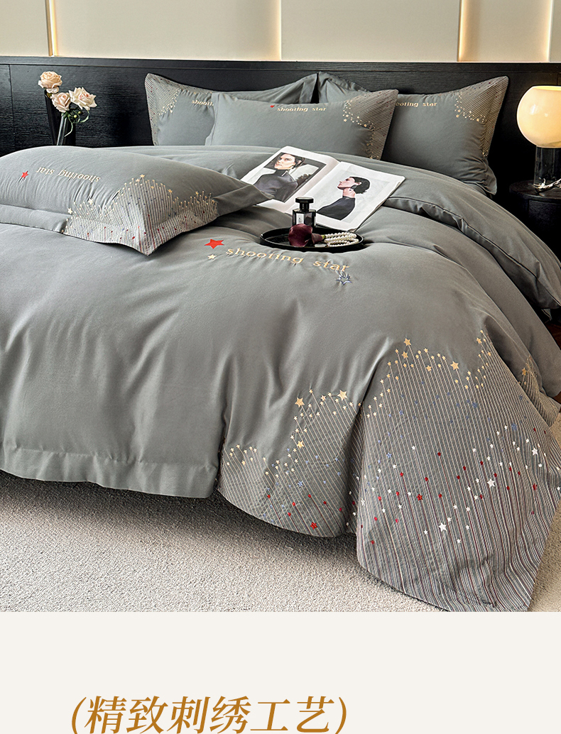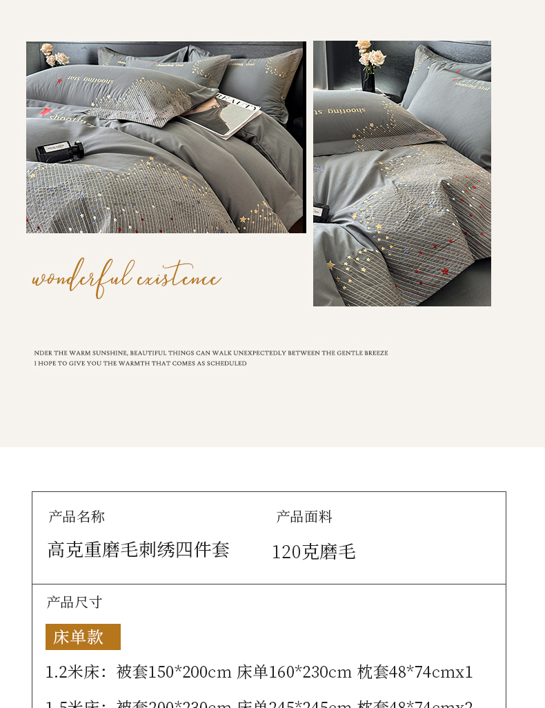 商品名称:苏源家居 2026新款轻奢风刺绣亲肤棉磨毛四件套 璀璨-高级灰