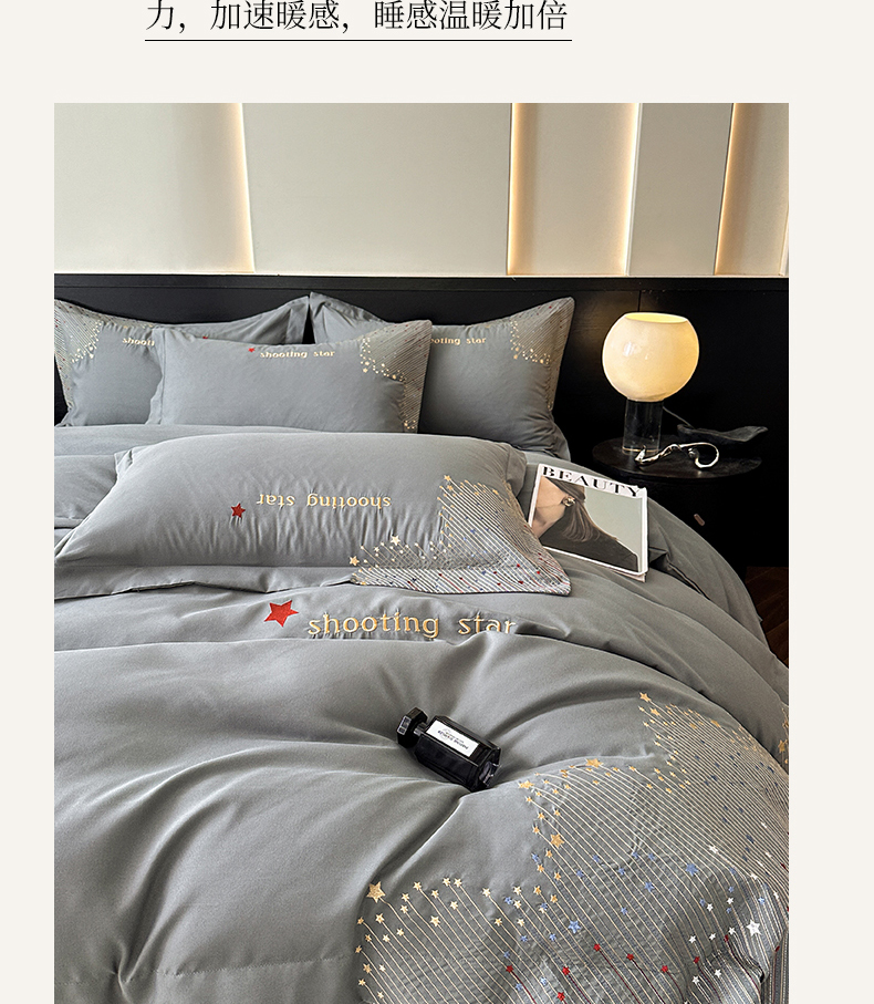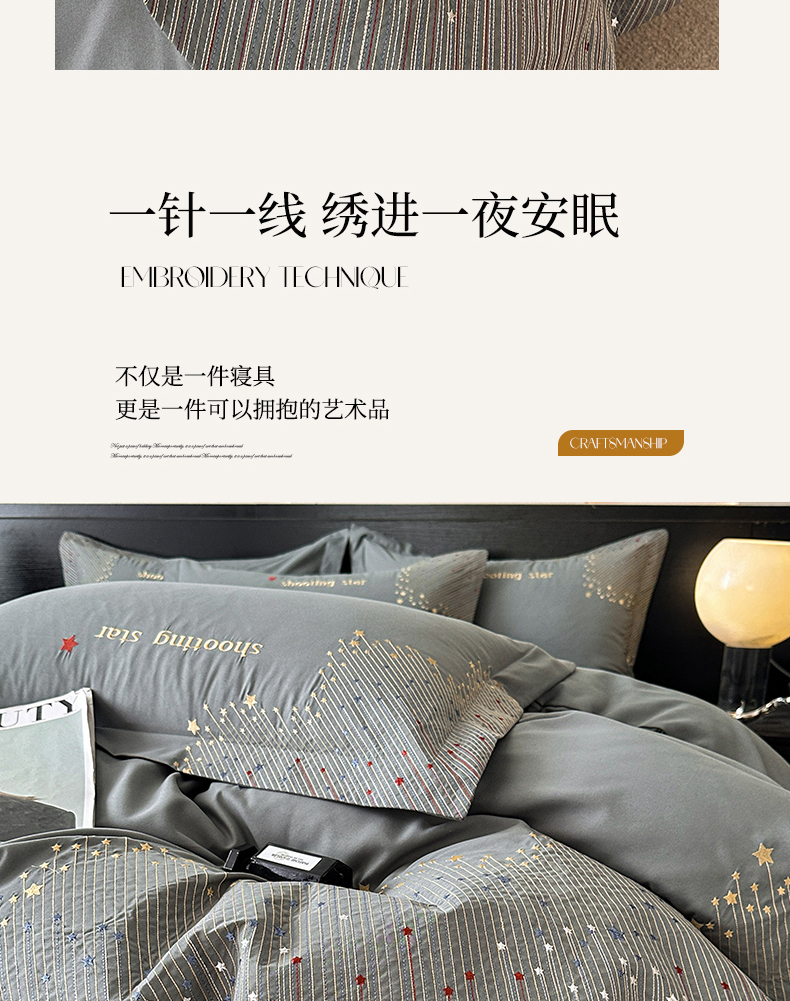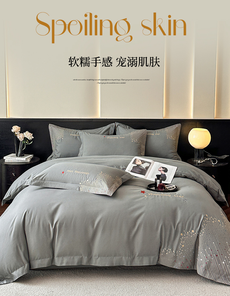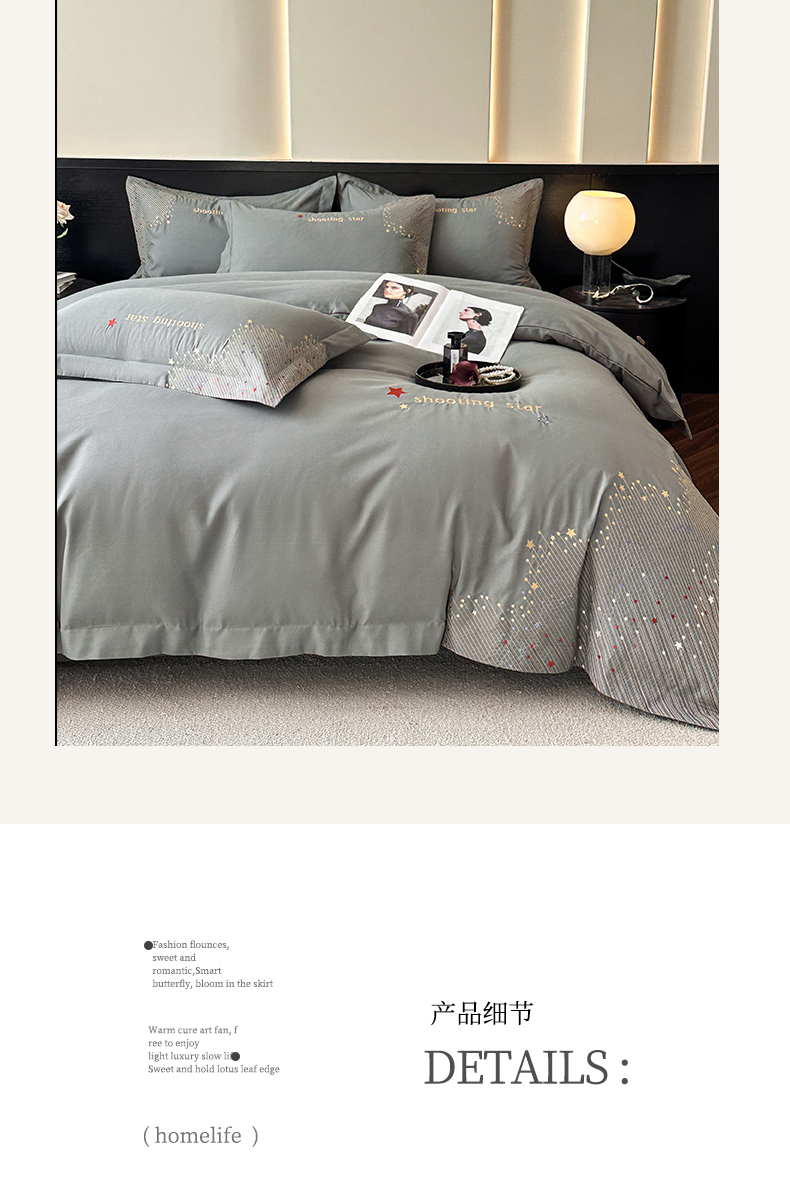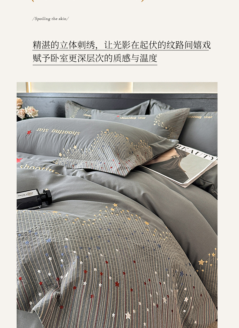 商品名称:苏源家居 2026新款轻奢风刺绣亲肤棉磨毛四件套 璀璨-高级灰