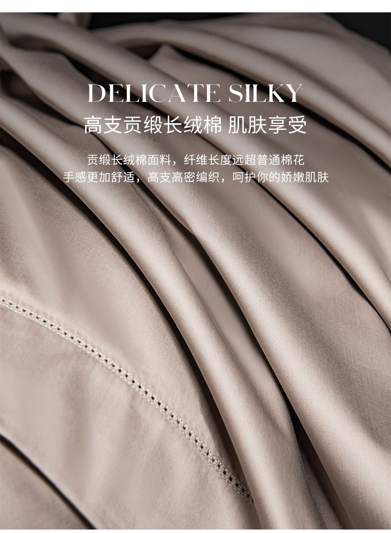 (总)轩和家居 2026新款高支贡缎长绒棉镂空四件套,茶杏色,琥珀橙,幻影灰,景泰蓝,莱姆绿,琉璃紫,鎏金色,落樱粉,慕斯棕,晴天蓝,松霜绿,夜阑黑