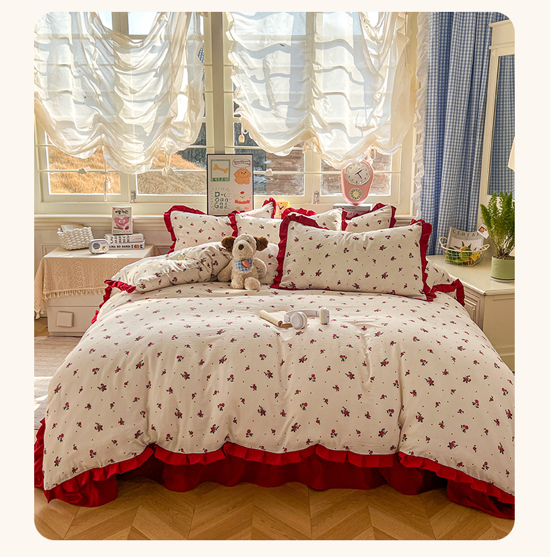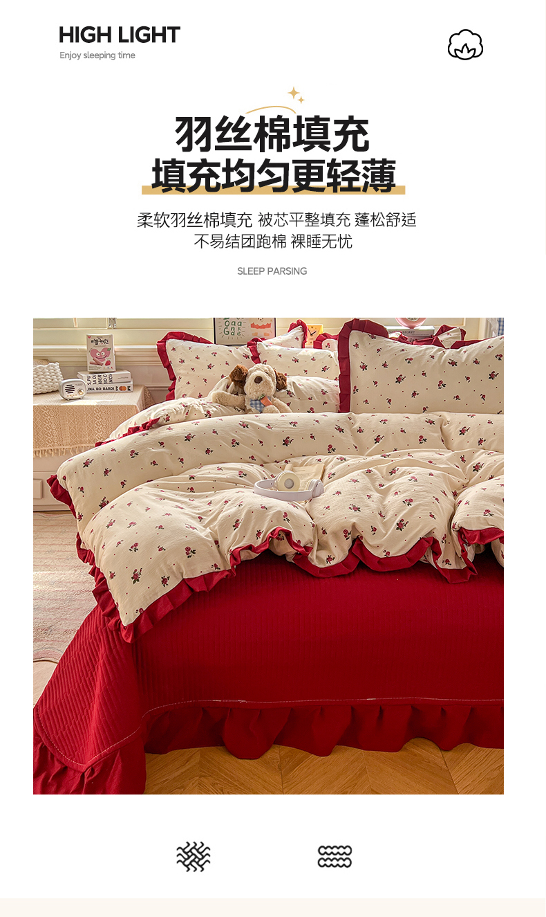 (总)美梦家纺 2025新款水洗棉花边夹棉床盖款四件套,波点,蝴蝶,玫瑰花园,樱桃,澜音花香