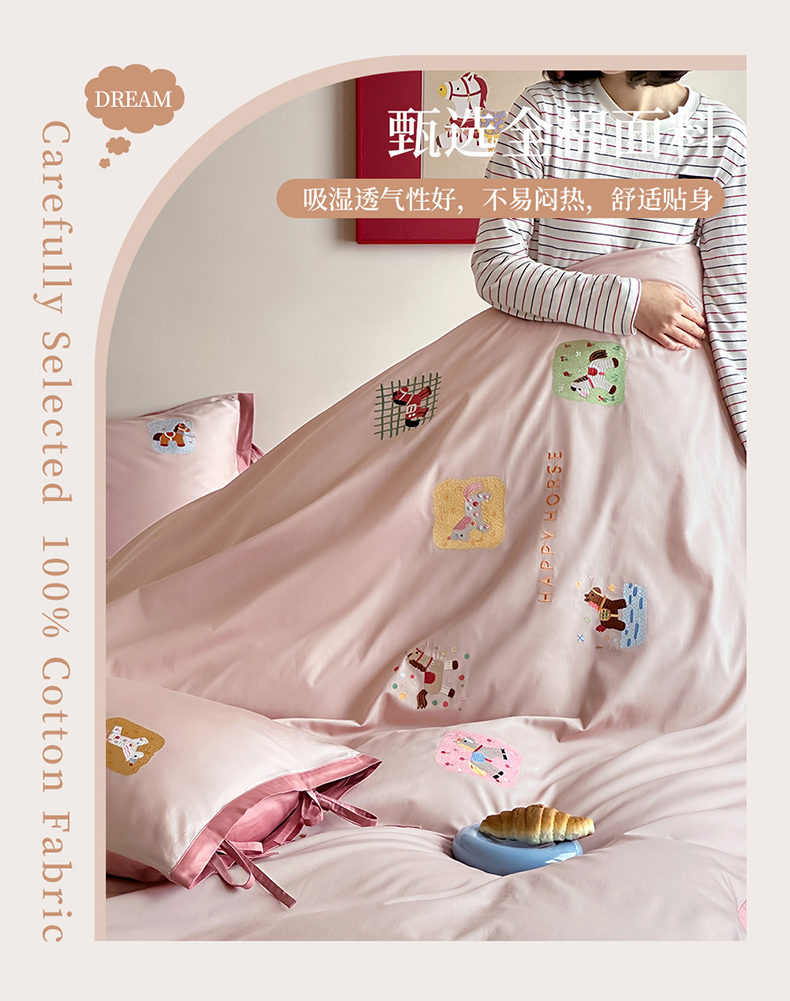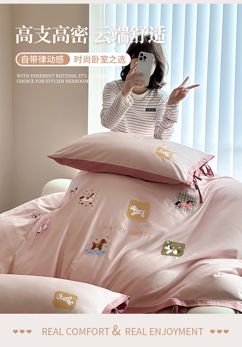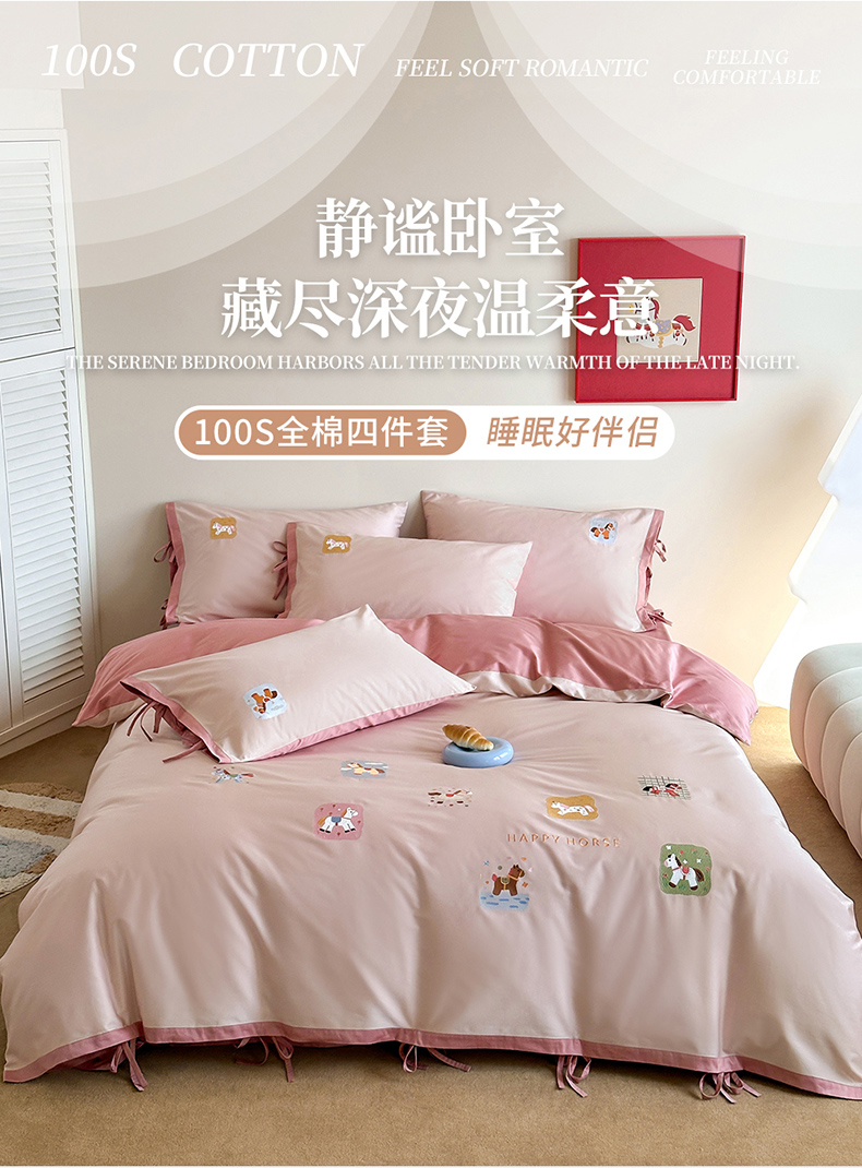 当前位置: 91家纺网 > 商品网购 > 床品套件 > 四件套 > 全棉普通四件套 > 爱缦 2026新款小马奔腾系列100s全棉四件套(此款券后控价:小号238,标准298,大号318) 小马奔腾-草莓粉
