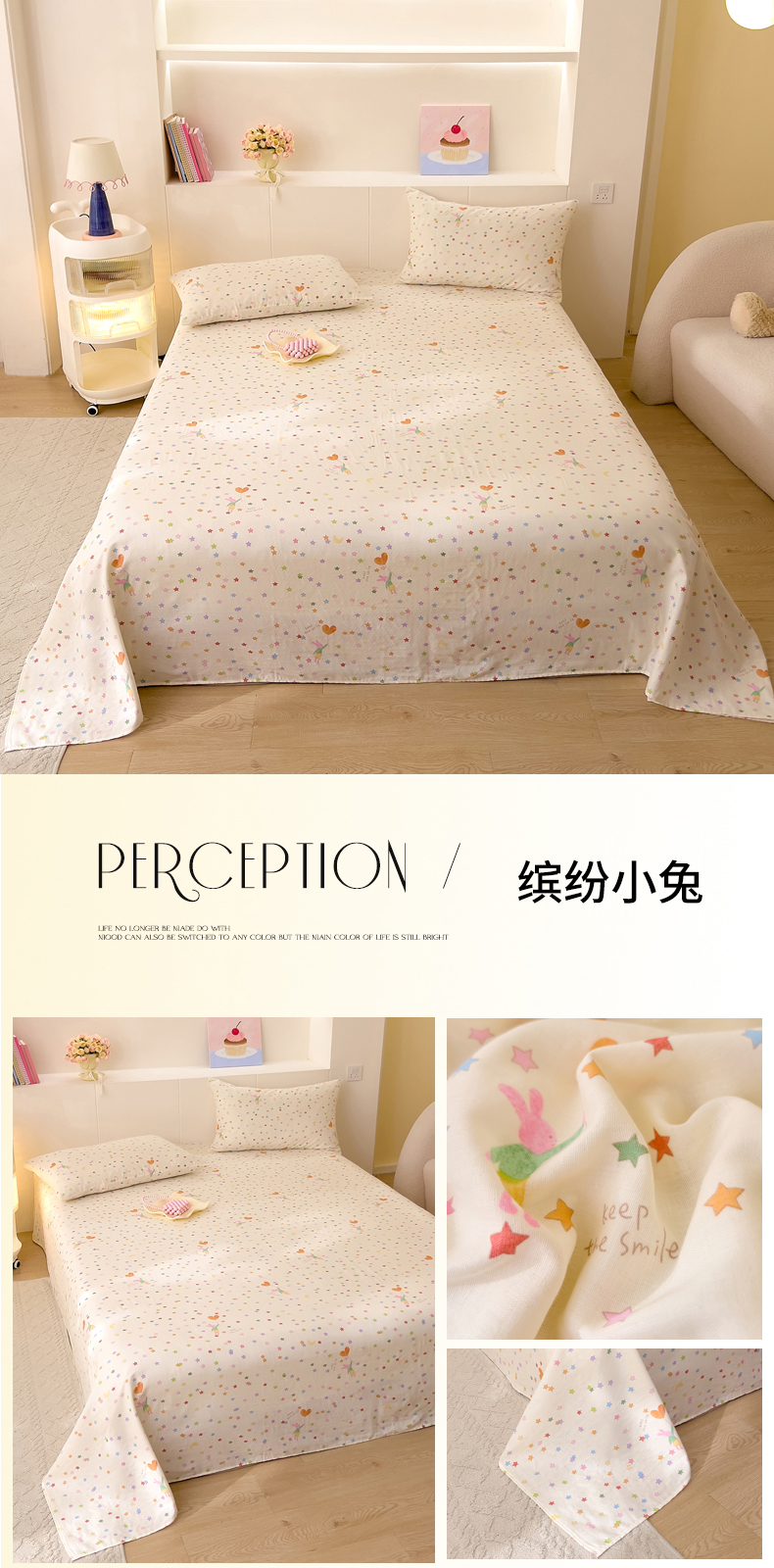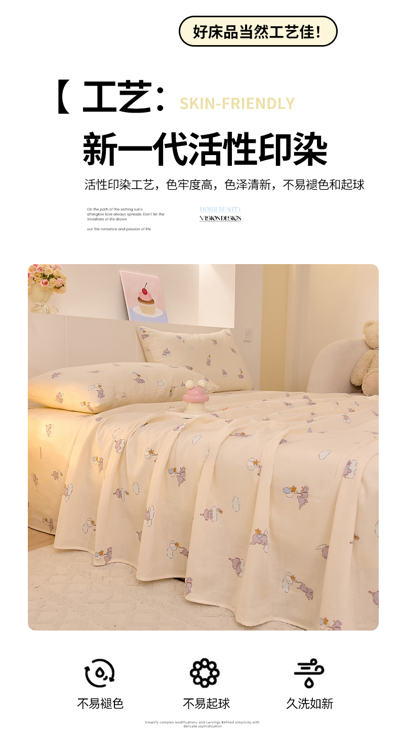 (总)DoDo 兜兜 2026新款全棉纯棉小温暖双层纱系列单床单【可定做尺寸】,缤纷小兔,春日女孩,春日小狗,丛林小兔,格子兔,蝴蝶兔兔,花园小狗,可可熊,快乐鸭,萌萌狮,气球小象,五彩樱桃,邂逅-粉,邂逅-黄,幸福小象-绿,雅颜,柚香