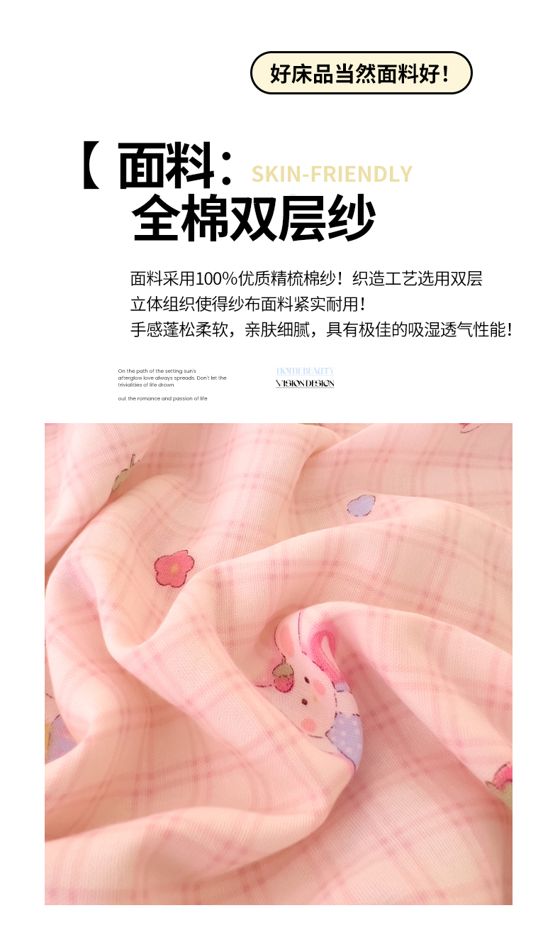 (总)DoDo 兜兜 2026新款全棉纯棉小温暖双层纱四件套【可定做尺寸】,缤纷小兔,春日女孩,春日小狗,丛林小兔,格子兔,蝴蝶兔兔,花园小狗,可可熊,快乐鸭,萌萌狮,气球小象,五彩樱桃,邂逅-粉,邂逅-黄,幸福小象-绿,雅颜,柚香