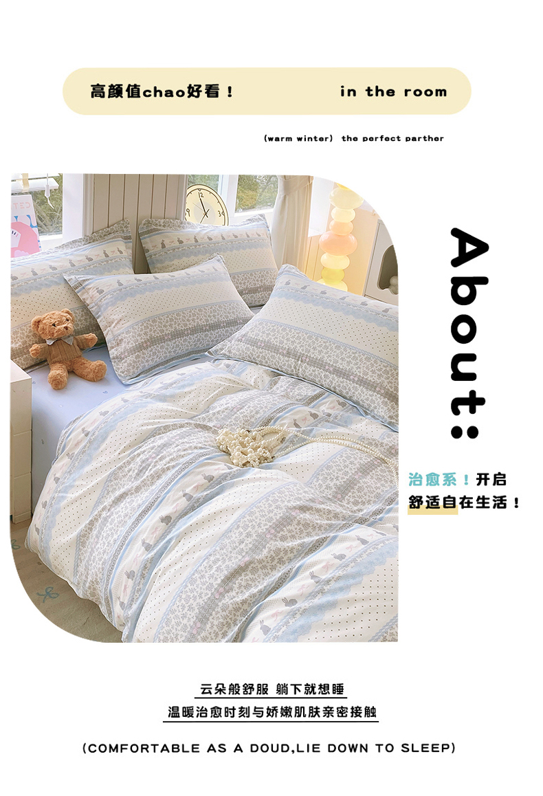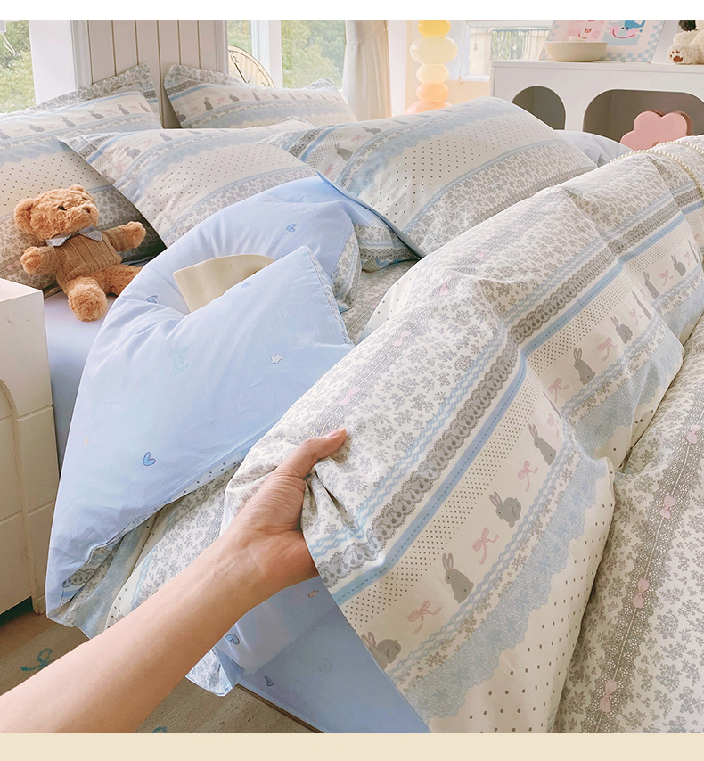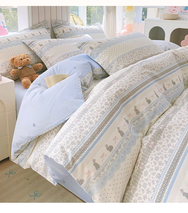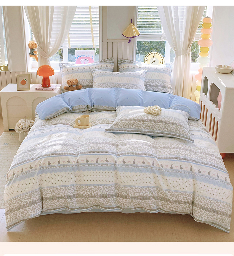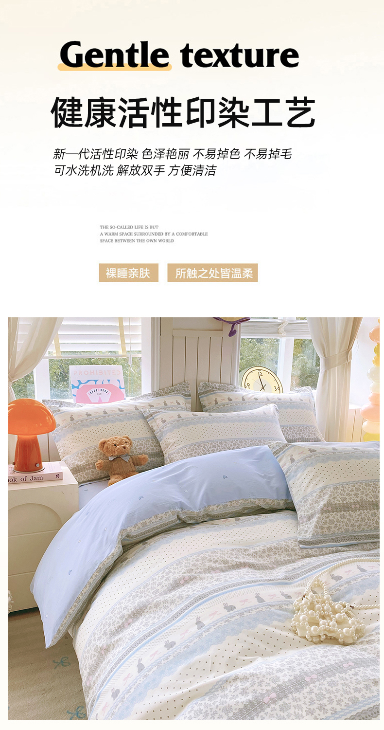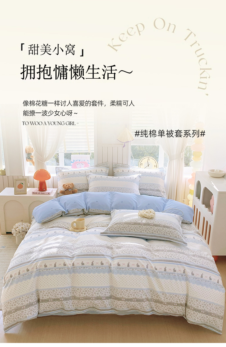 • 91家纺网 家纺一手货源 找家纺 金丝兔 2026新款ins新疆全棉印花小清新纯棉单被套(提供买家秀和质检报告) 海盐兔