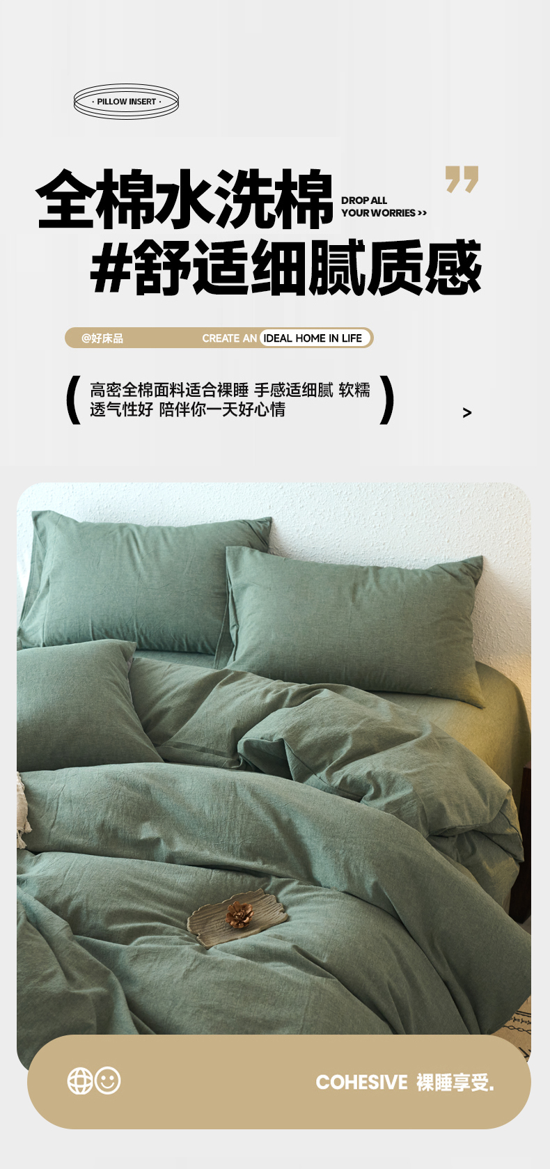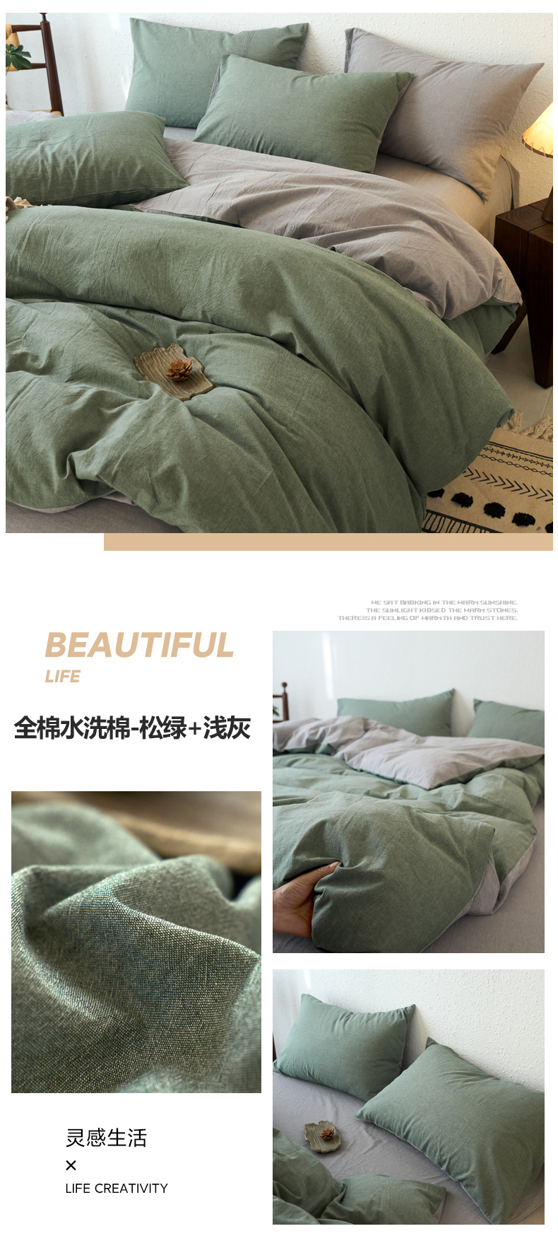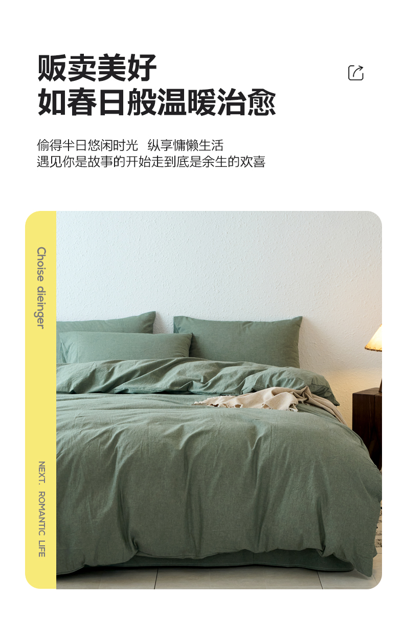 当前位置: 91家纺网 > 商品网购 > 床品套件 > 四件套 > 全棉普通四件套 > 兰紫橙家纺 2026新款A类色织纯色全棉水洗棉四件套 全棉水洗棉-松绿
