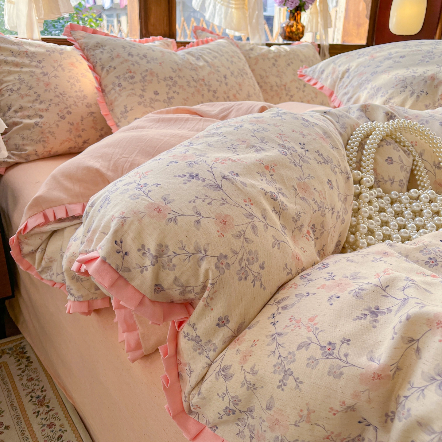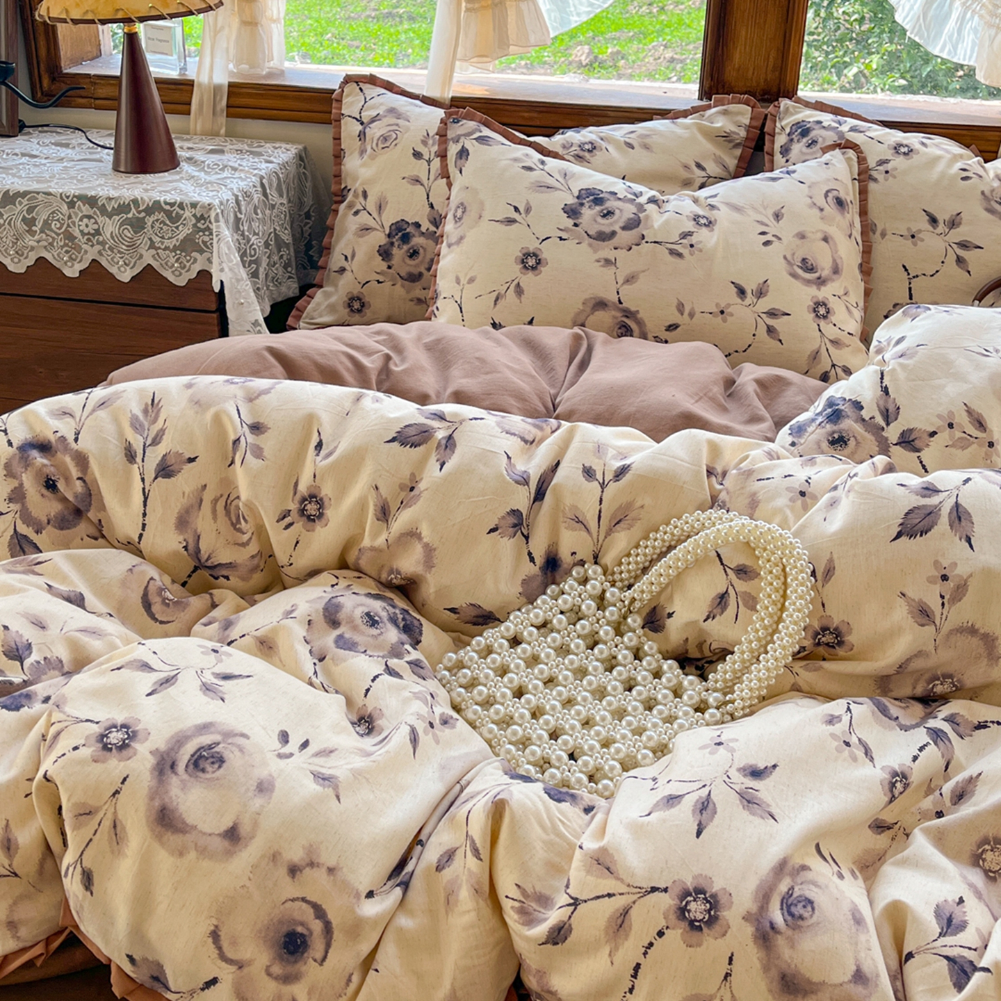 当前位置: 91家纺网 > 商品网购 > 床品套件 > 四件套 > 全棉普通四件套 > 金丝鸟家纺 2026春夏新款全棉纯棉棉麻印花木耳花边款四件套 莫凡