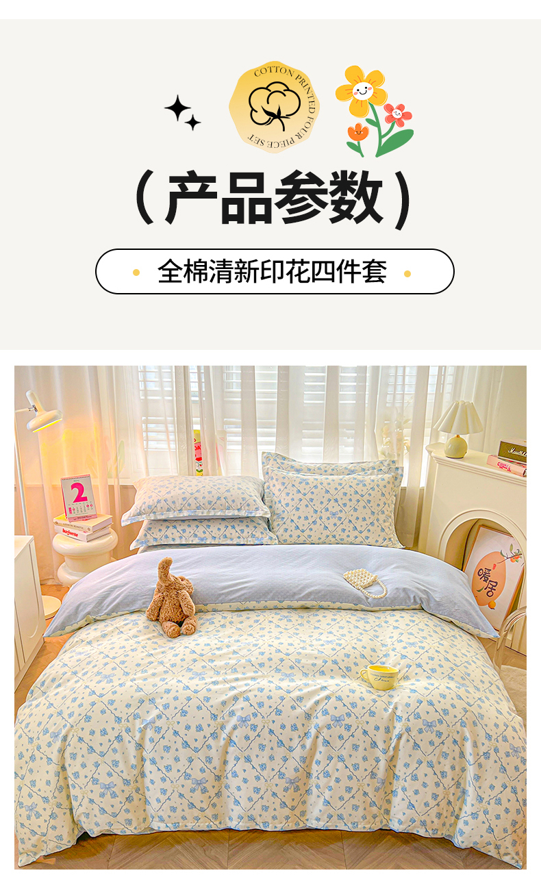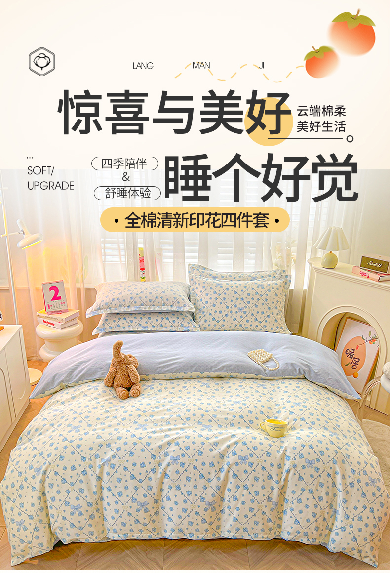 当前位置: 91家纺网 > 商品网购 > 床品套件 > 四件套 > 全棉普通四件套 > 珂博家纺 2026新款12868全棉纯棉小清新印花四件套 浪漫满屋