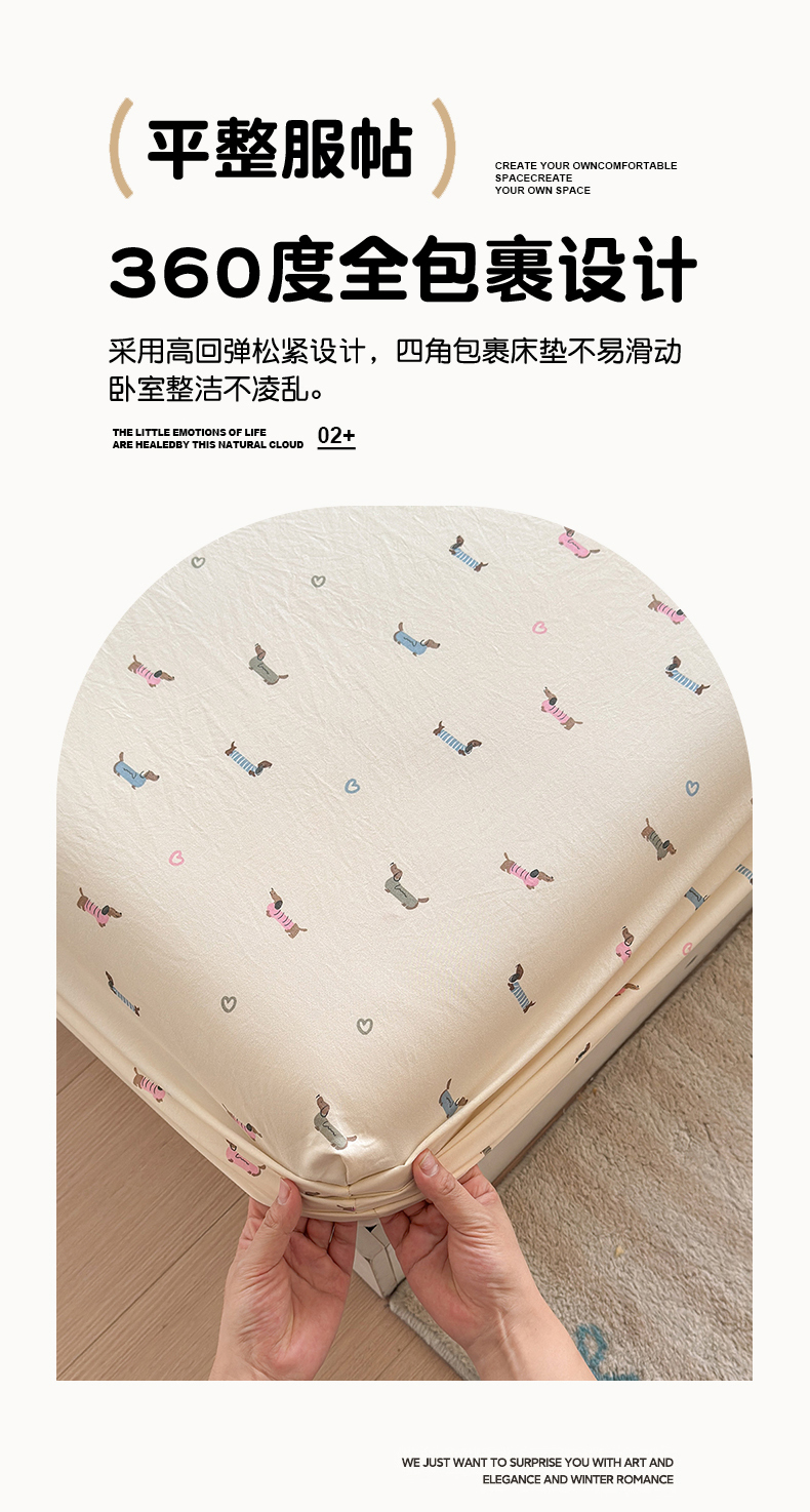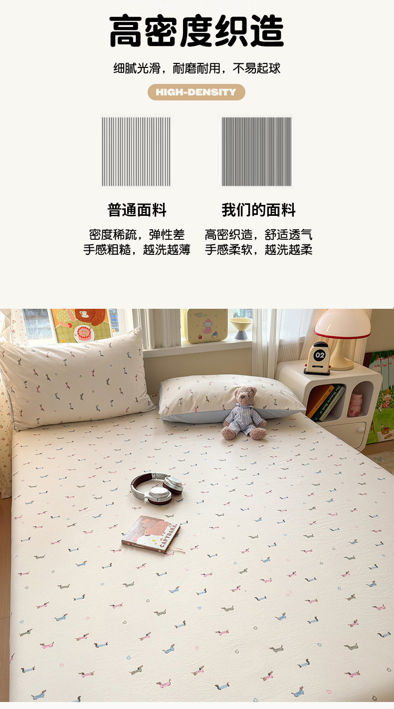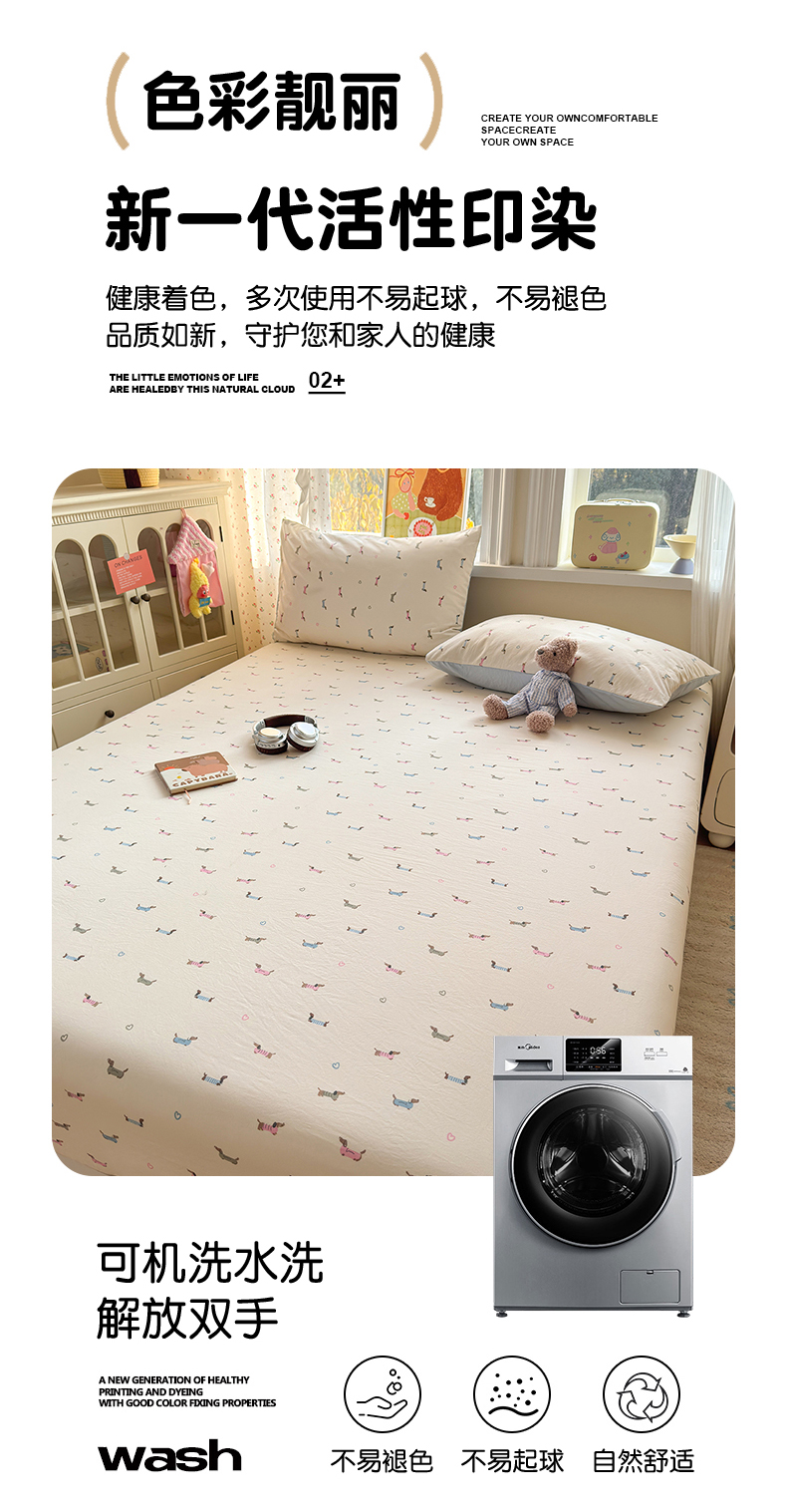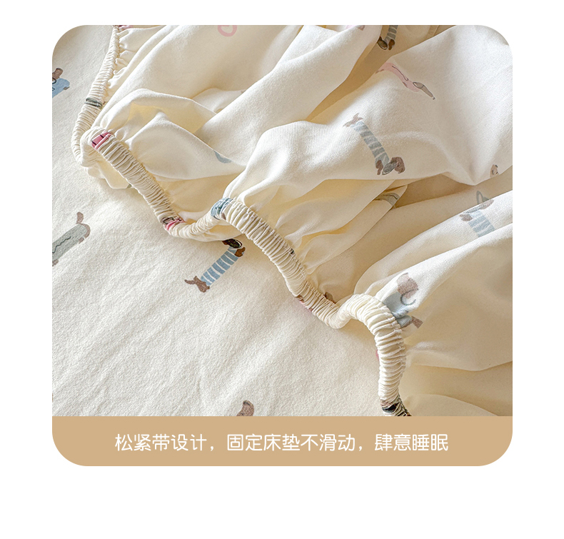 • 91家纺网 家纺一手货源 找家纺 沐芷 2026 【提供买家秀】古法水洗仿棉床笠席梦思床罩床垫防滑床套罩床笠三件套 萌犬游记