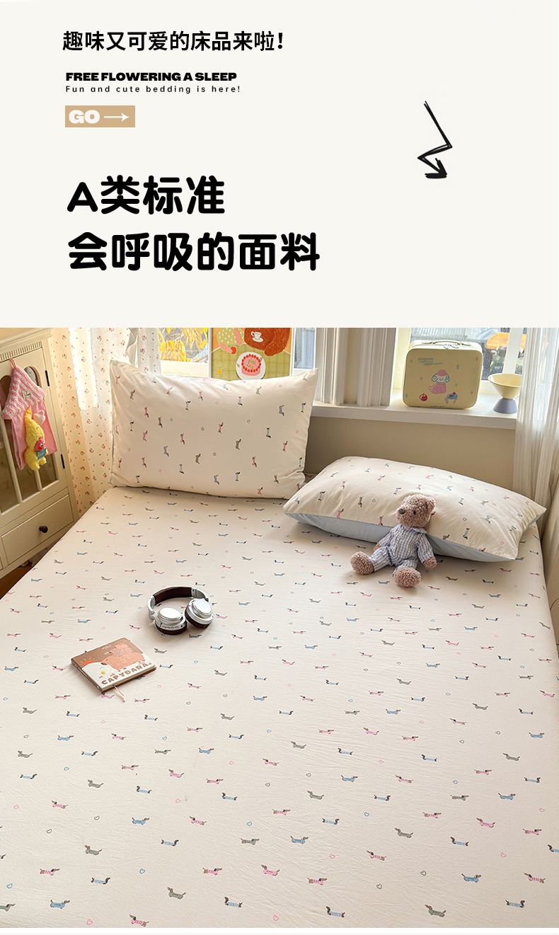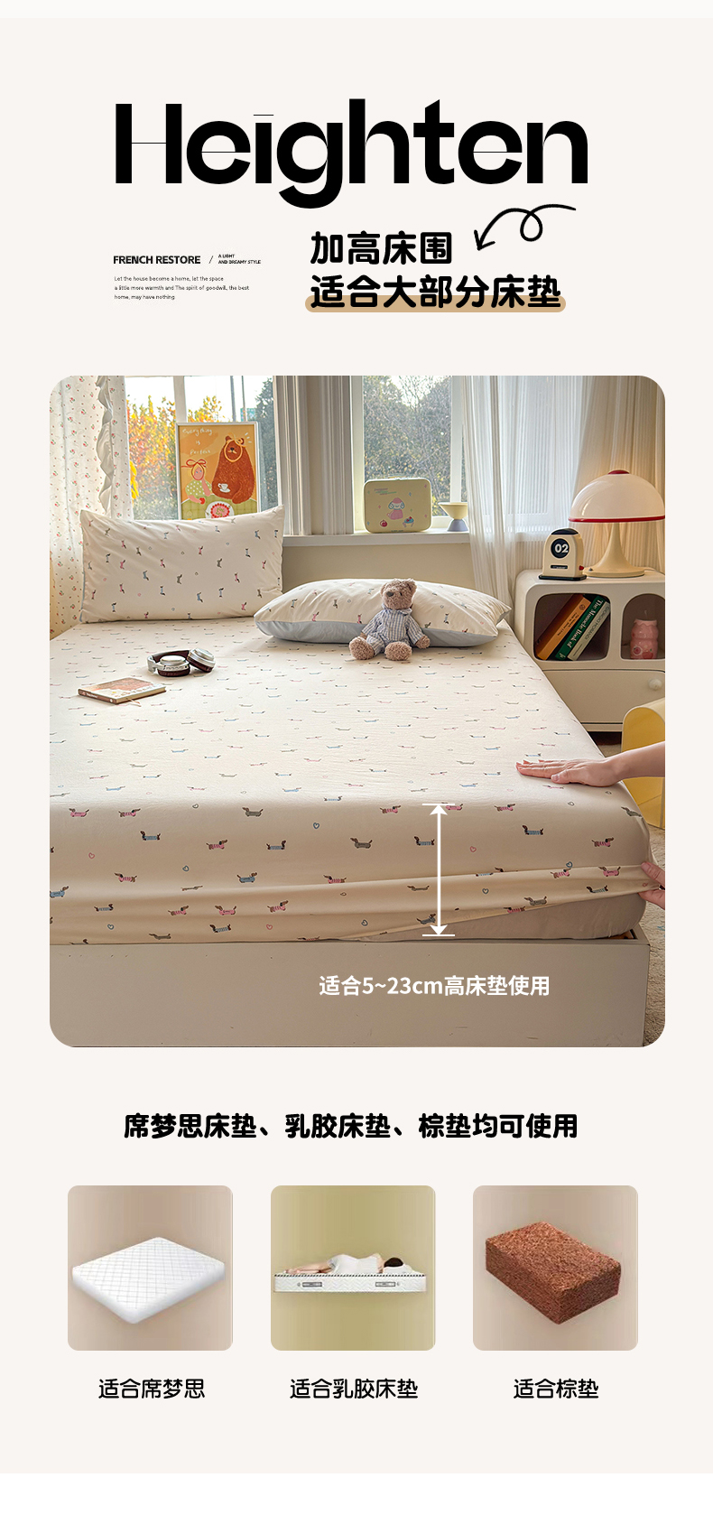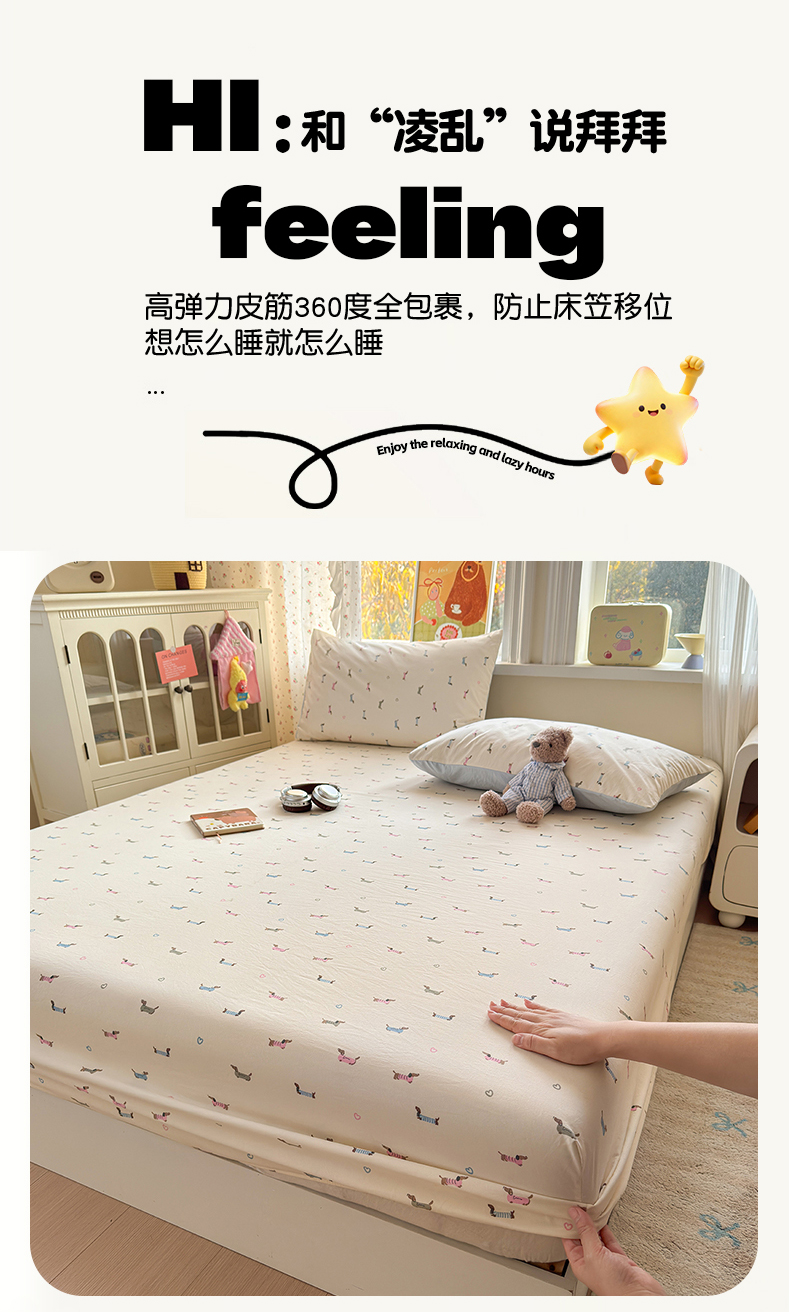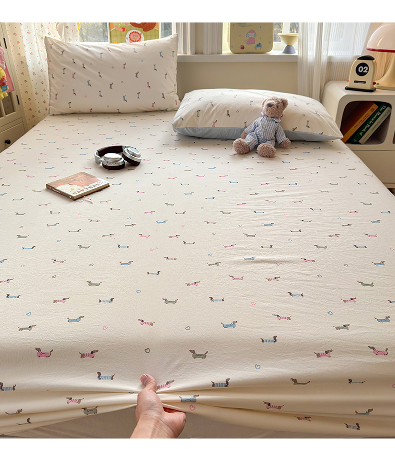 • 91家纺网 家纺一手货源 找家纺 沐芷 2026 【提供买家秀】古法水洗仿棉床笠席梦思床罩床垫防滑床套罩床笠三件套 萌犬游记
